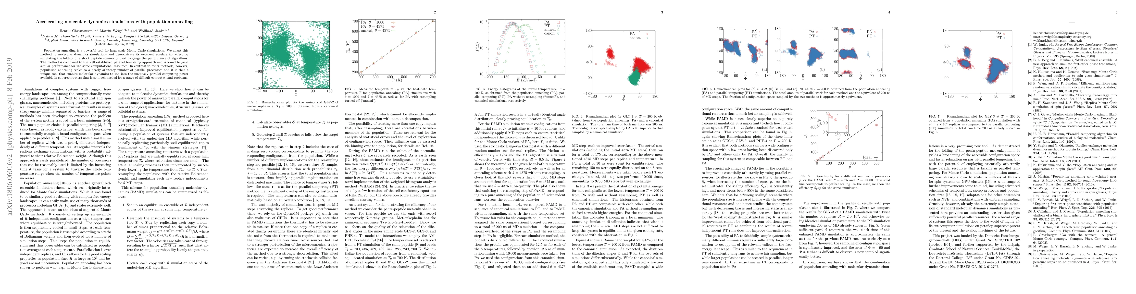This paper introduces population annealing to accelerate molecular dynamics simulations, demonstrating its effectiveness in simulating peptide folding. It scales well with parallel processors, offering a unique approach to leverage supercomputers' power for complex computational problems.