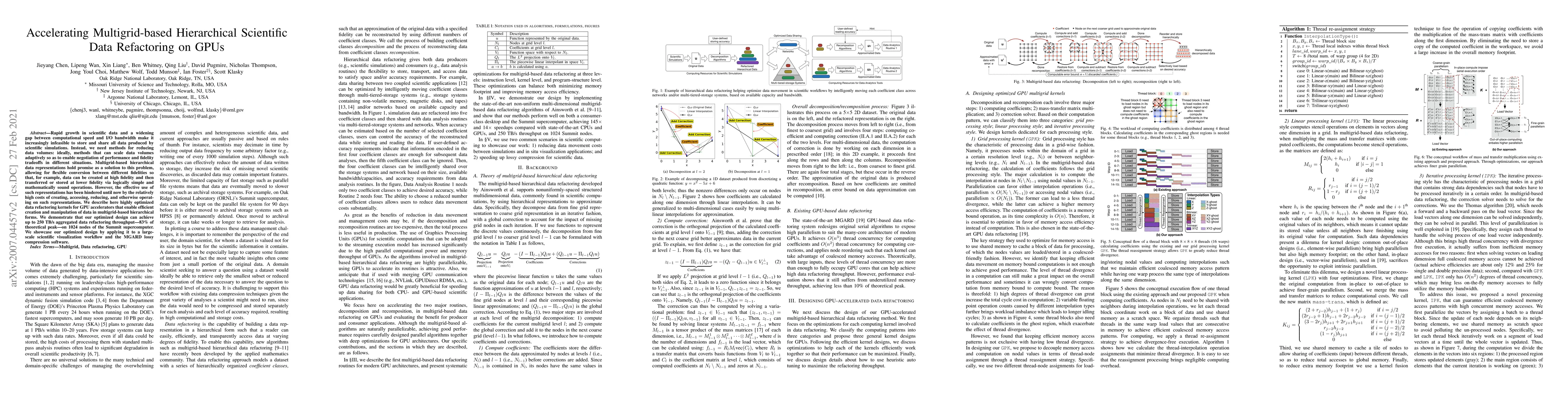 This paper presents highly optimized GPU kernels for efficient multigrid-based hierarchical scientific data refactoring, achieving up to 250 TB/s throughput on 1024 nodes of the Summit supercomputer, addressing the challenges of data volume reduction and performance-fidelity trade-offs in scientific simulations.