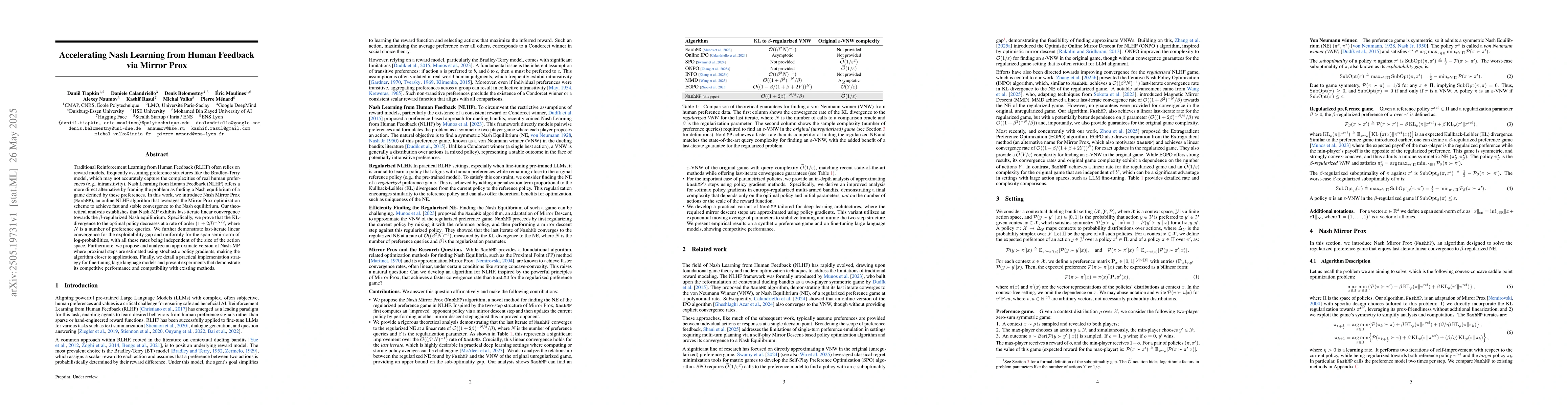 The research introduces Nash Mirror Prox (Nash-MP), an online Nash Learning from Human Feedback (NLHF) algorithm that uses the Mirror Prox optimization scheme for efficient convergence to the Nash equilibrium.