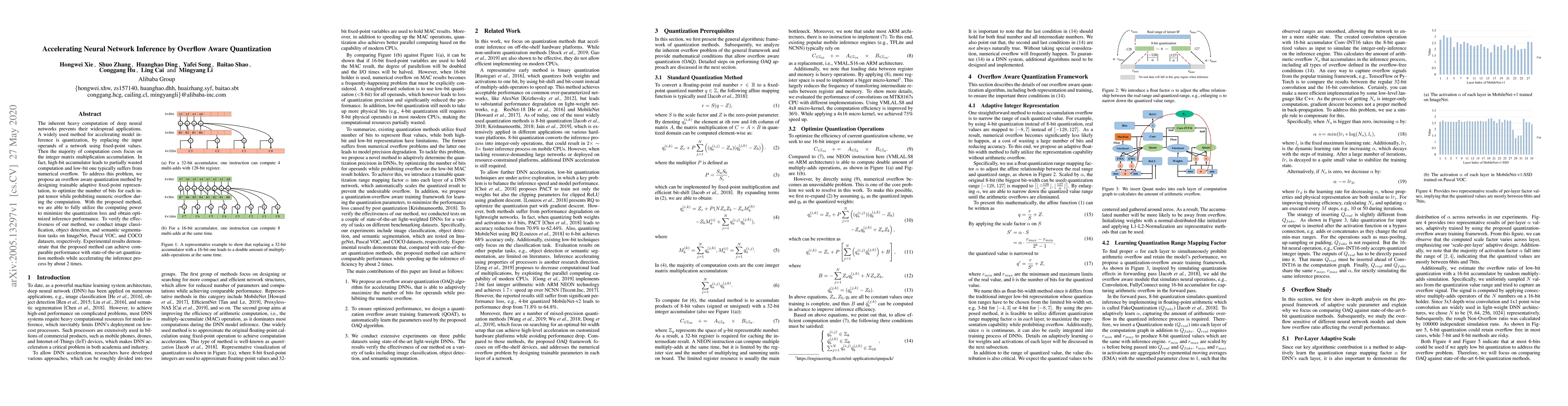 This paper proposes an overflow-aware quantization method to accelerate neural network inference by optimizing the number of bits for each tensor to prevent numerical overflow, achieving comparable performance to state-of-the-art methods while doubling the inference speed on various tasks.