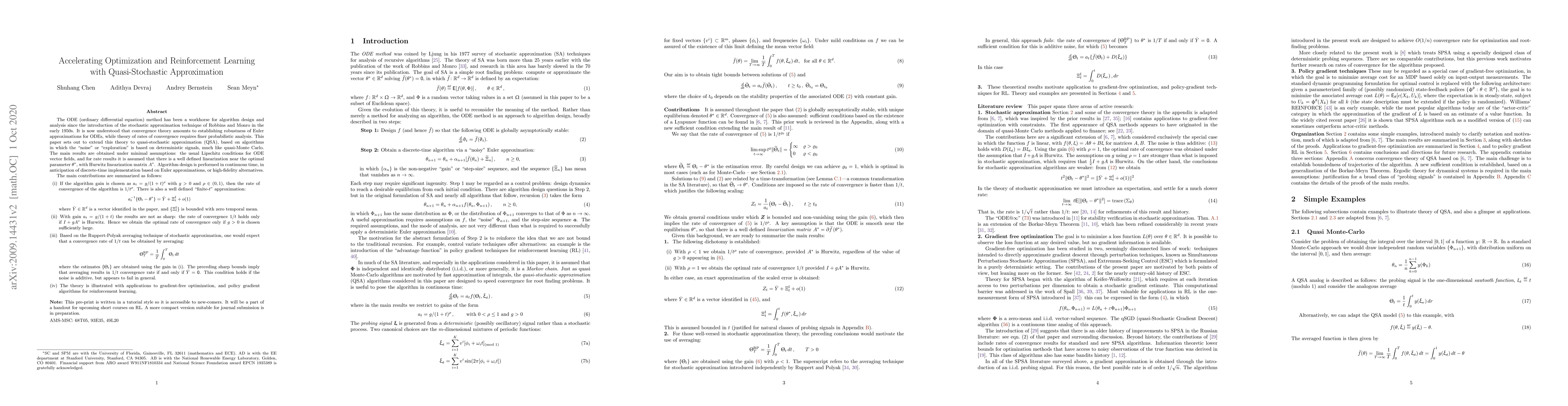 Researchers developed a new optimization technique called quasi-stochastic approximation that can accelerate reinforcement learning and gradient-free optimization with minimal assumptions, achieving faster convergence rates than traditional stochastic approximation methods.