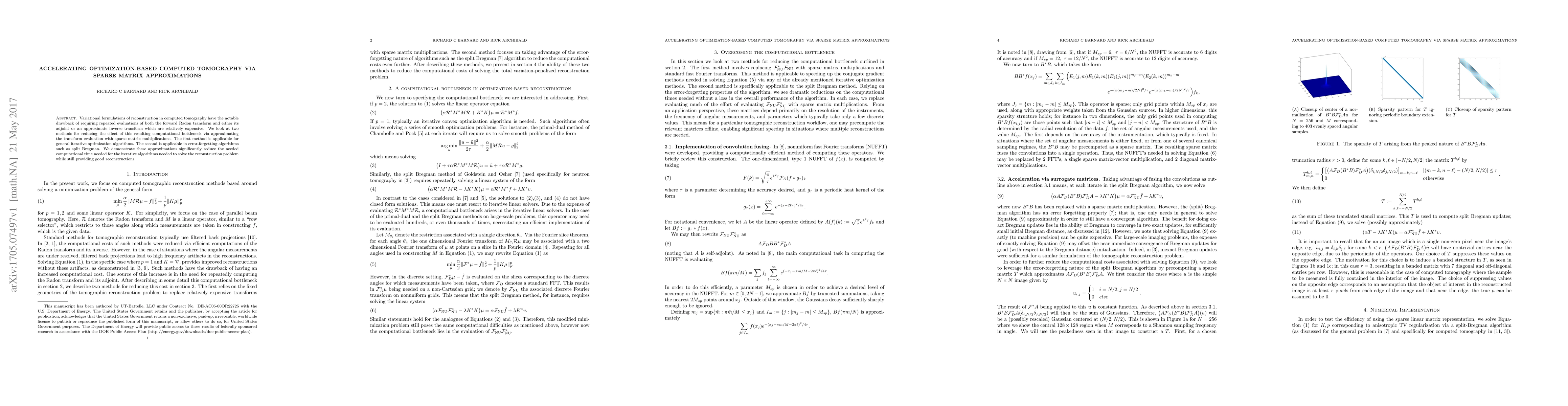 Researchers developed methods to speed up computed tomography reconstruction by approximating forward Radon transform evaluations with sparse matrix multiplications, reducing computational time without compromising image quality.