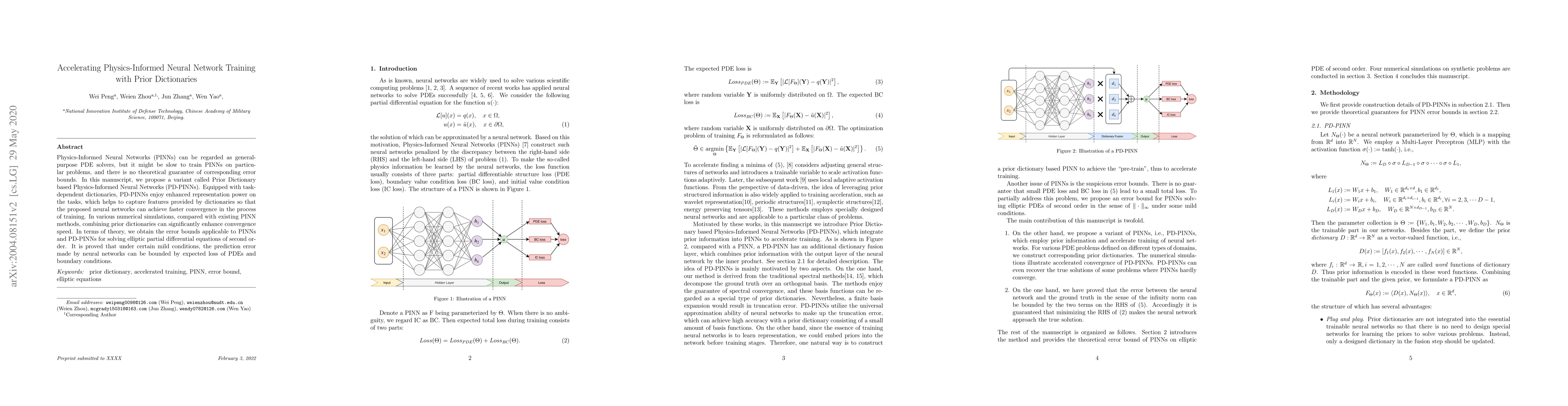 Researchers developed a new method called Prior Dictionary based Physics-Informed Neural Networks (PD-PINNs) that uses task-dependent dictionaries to speed up training and improve accuracy in solving partial differential equations.