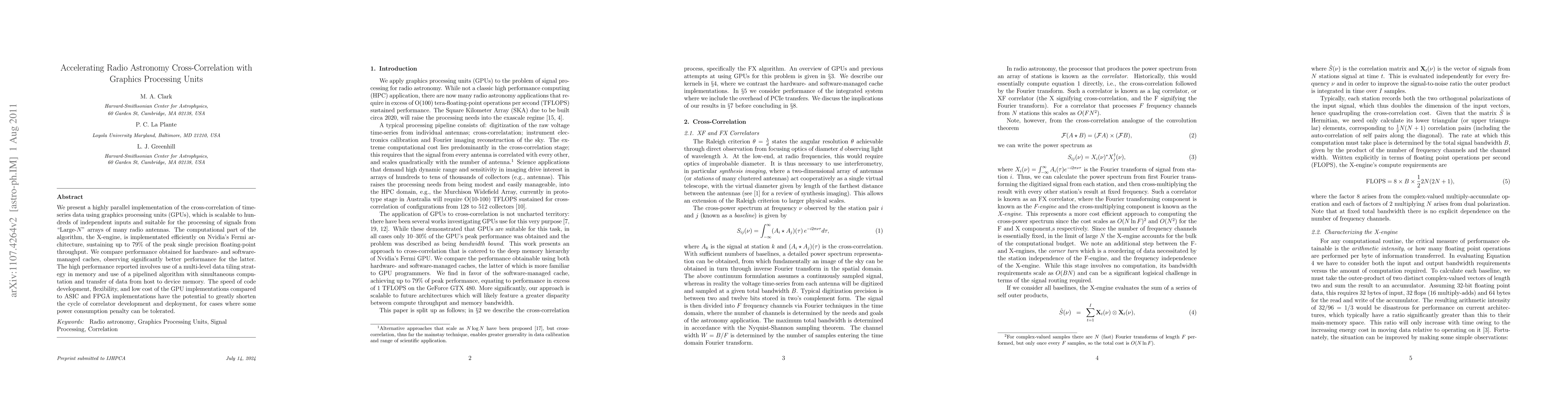 This paper presents a highly parallel GPU-based implementation for cross-correlating time-series data from large radio astronomy arrays, achieving up to 79% of peak performance on the Fermi architecture. The GPU approach offers significant speed and flexibility compared to ASIC and FPGA alternatives, potentially reducing correlator development time.