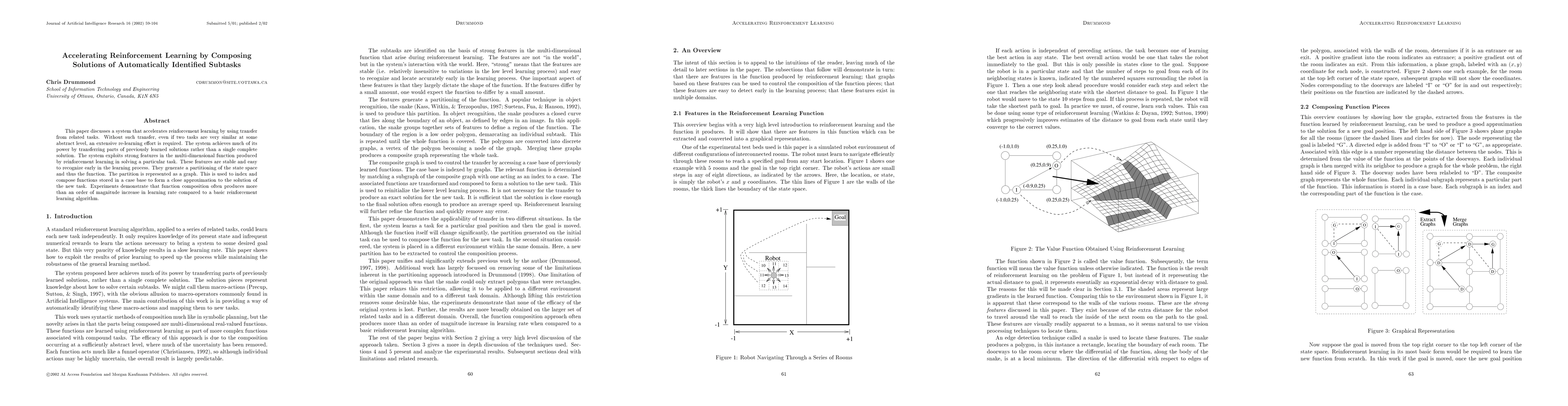 This paper proposes a system that accelerates reinforcement learning by composing parts of previously learned solutions for identified subtasks, significantly improving learning rates compared to basic reinforcement learning. The system leverages stable features in the learned function to partition the state space and compose solutions from a case base.