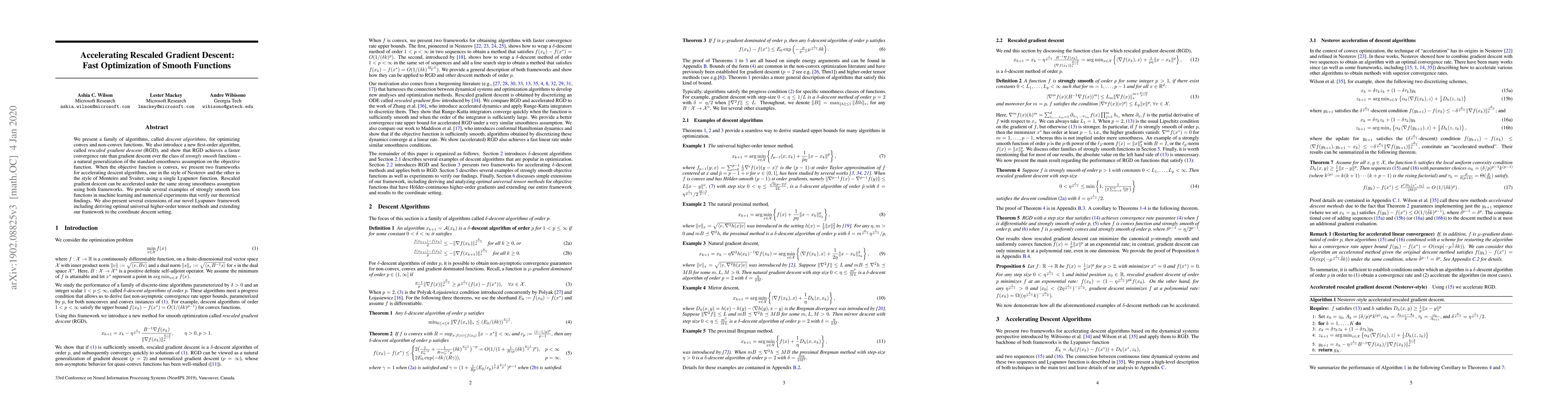 We present a family of algorithms, called descent algorithms, for optimizing convex and non-convex functions. We also introduce a new first-order algorithm, called rescaled gradient descent (RGD), and show that RGD achieves a faster convergence rate than gradient descent provided the function is strongly smooth -- a natural generalization of the standard smoothness assumption on the objective function. When the objective function is convex, we present two novel frameworks for "accelerating" descent methods, one in the style of Nesterov and the other in the style of Monteiro and Svaiter, using a single Lyapunov. Rescaled gradient descent can be accelerated under the same strong smoothness assumption using both frameworks. We provide several examples of strongly smooth loss functions in machine learning and numerical experiments that verify our theoretical findings. We also present several extensions of our novel Lyapunov framework, including deriving optimal universal tensor methods and extending our framework to the coordinate setting.