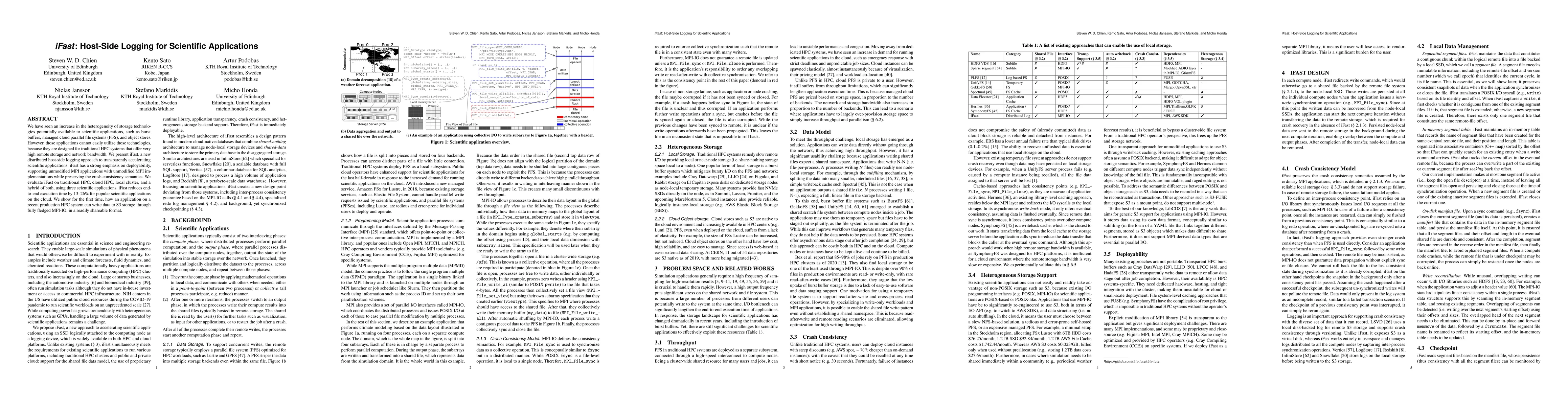 The paper introduces iFast, a library-level approach to accelerate scientific applications using MPI-IO by decoupling I/O, caching, and storage. It demonstrates a 13-26% reduction in execution time for scientific applications on cloud platforms, outperforming SymphonyFS by 12-23% while ensuring crash consistency.