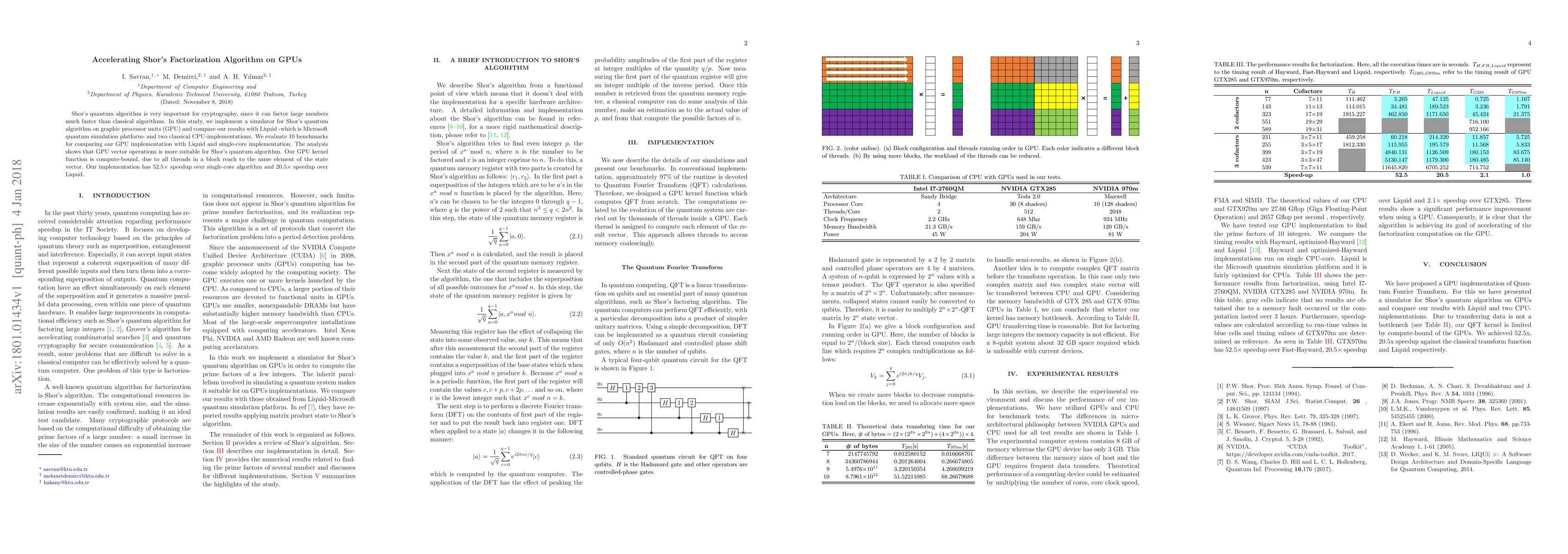 Shor's quantum algorithm is very important for cryptography, since it can factor large numbers much faster than classical algorithms. In this study, we implement a simulator for Shor's quantum algorithm on graphic processor units (GPU) and compare our results with Liquid -which is Microsoft quantum simulation platform- and two classical CPU-implementations. We evaluate 10 benchmarks for comparing our GPU implementation with Liquid and single-core implementation. The analysis shows that GPU vector operations is more suitable for Shor's quantum algorithm. Our GPU kernel function is compute-bound, due to all threads in a block reach to the same element of the state vector. Our implementation has $52.5\times$ speedup over single-core algorithm and $20.5\times$ speedup over Liquid.