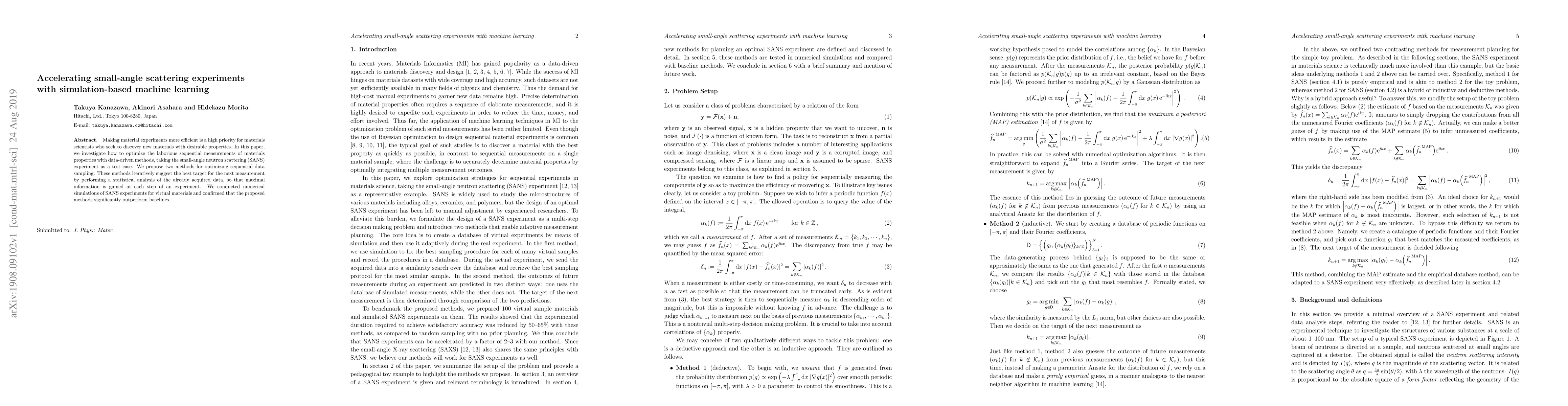 Making material experiments more efficient is a high priority for materials scientists who seek to discover new materials with desirable properties. In this paper, we investigate how to optimize the laborious sequential measurements of materials properties with data-driven methods, taking the small-angle neutron scattering (SANS) experiment as a test case. We propose two methods for optimizing sequential data sampling. These methods iteratively suggest the best target for the next measurement by performing a statistical analysis of the already acquired data, so that maximal information is gained at each step of an experiment. We conducted numerical simulations of SANS experiments for virtual materials and confirmed that the proposed methods significantly outperform baselines.