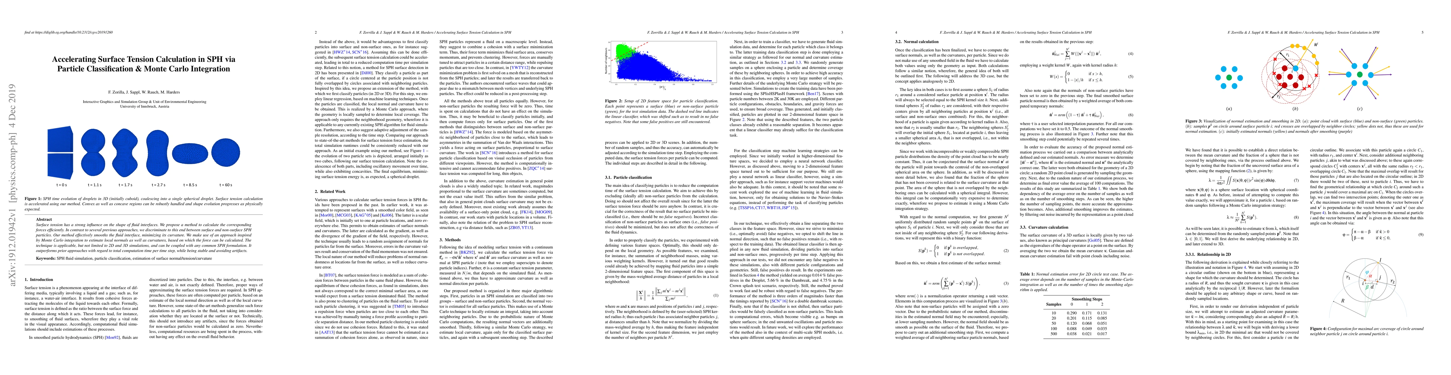 Surface tension has a strong influence on the shape of fluid interfaces. We propose a method to calculate the corresponding forces efficiently. In contrast to several previous approaches, we discriminate to this end between surface and non-surface SPH particles. Our method effectively smooths the fluid interface, minimizing its curvature. We make use of an approach inspired by Monte Carlo integration to estimate local normals as well as curvatures, based on which the force can be calculated. The technique is applicable, but not limited to 2D and 3D simulations, and can be coupled with any common SPH formulation. It outperforms prior approaches with regard to total computation time per time step, while being stable and avoiding artifacts.