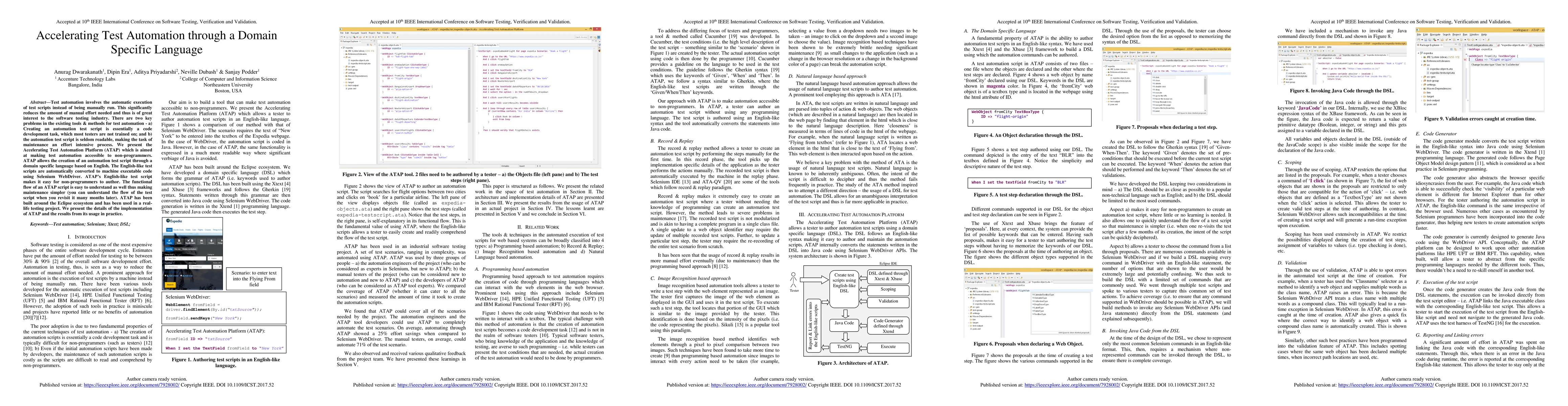 The paper introduces the Accelerating Test Automation Platform (ATAP) to simplify test automation for non-programmers using a domain-specific language based on English, which converts to machine-executable code, thus reducing maintenance effort and making scripts more readable. ATAP was implemented in the Eclipse ecosystem and demonstrated in a practical testing project.