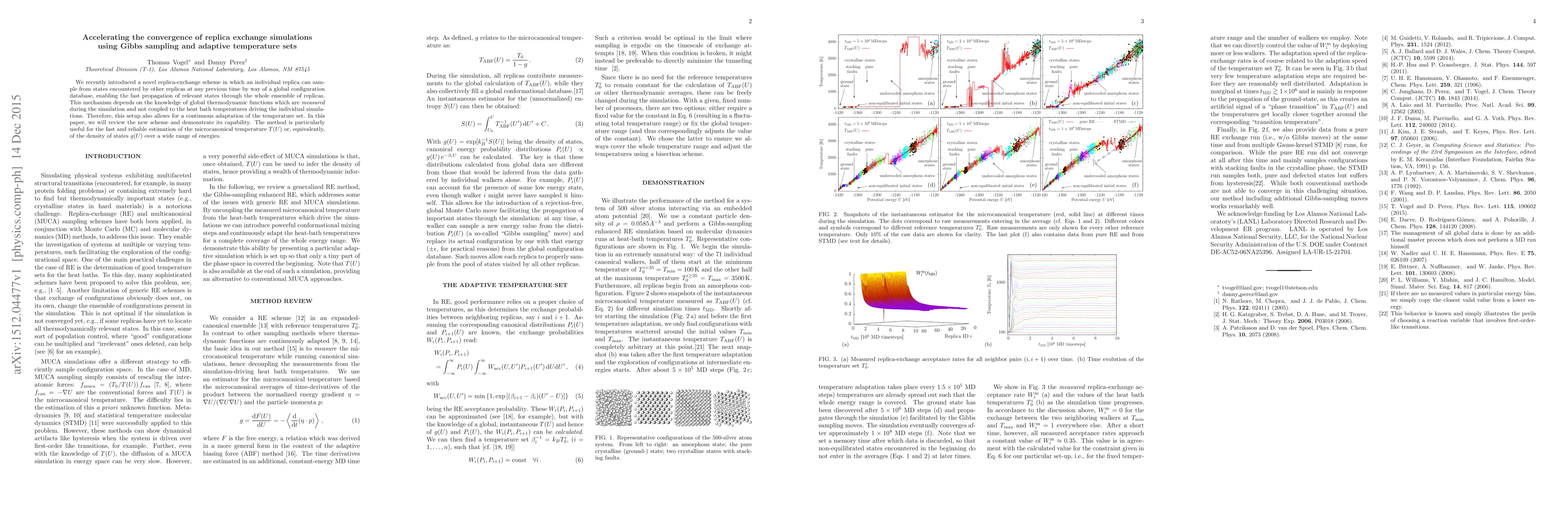 This paper introduces a new replica-exchange scheme that accelerates convergence using Gibbs sampling and adaptive temperature sets, enabling fast estimation of microcanonical temperature or density of states.