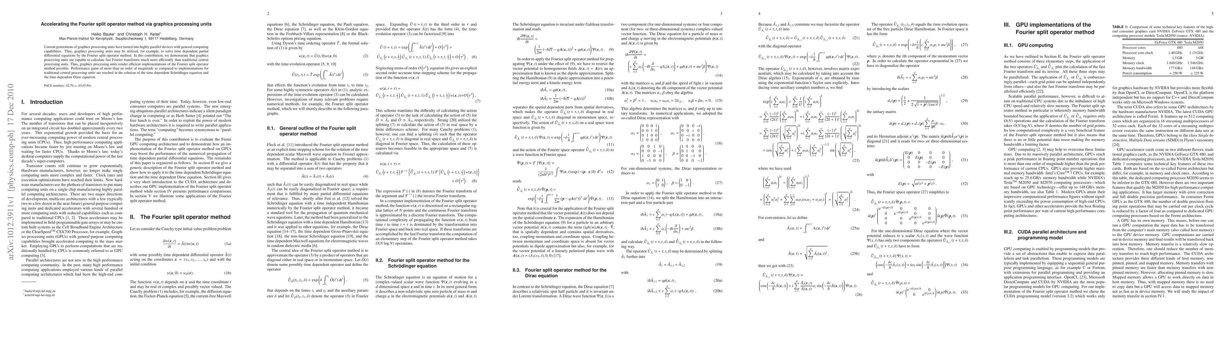 This paper demonstrates that graphics processing units (GPUs) can significantly accelerate the Fourier split operator method for solving time-dependent partial differential equations, achieving performance gains over traditional CPUs by more than an order of magnitude in solving the time-dependent Schrödinger and Dirac equations.