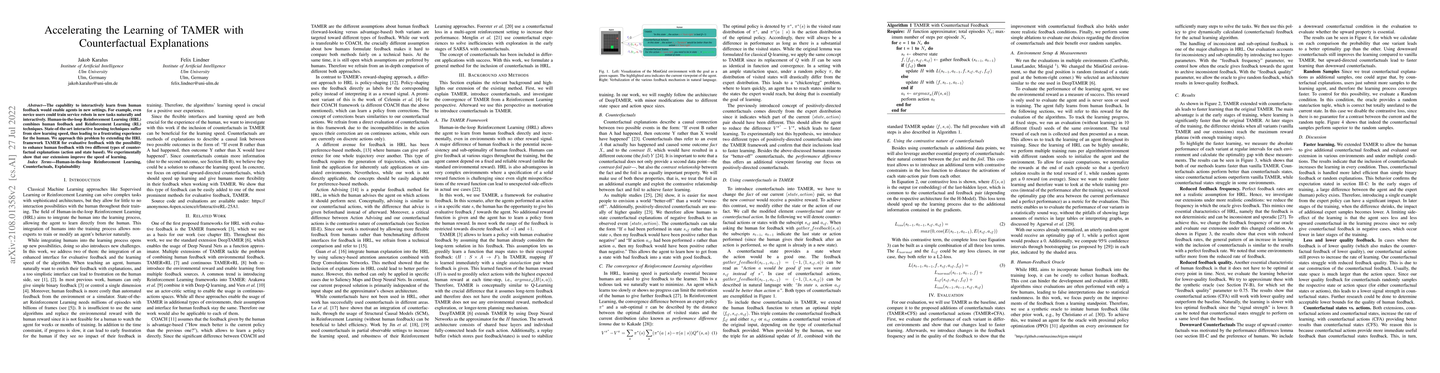 This paper proposes enhancements to the TAMER framework for Human-in-the-loop Reinforcement Learning by incorporating counterfactual explanations to speed up learning from human feedback. The results demonstrate improved learning efficiency, benefiting the interactive training of service robots.