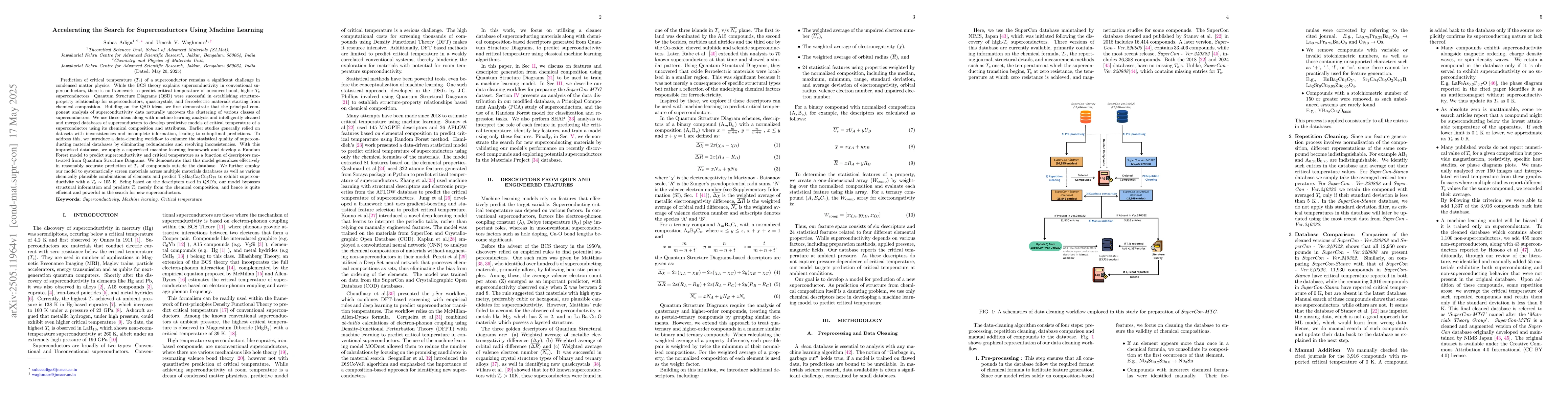 The research utilizes Quantum Structure Diagrams (QSD) to establish structure-property relationships for superconductors, quasicrystals, and ferroelectric materials. It cleans superconducting databases to remove redundancies and inconsistencies, then applies a Random Forest machine learning model to predict superconductivity and $T_c$ based on chemical composition descriptors derived from QSD.