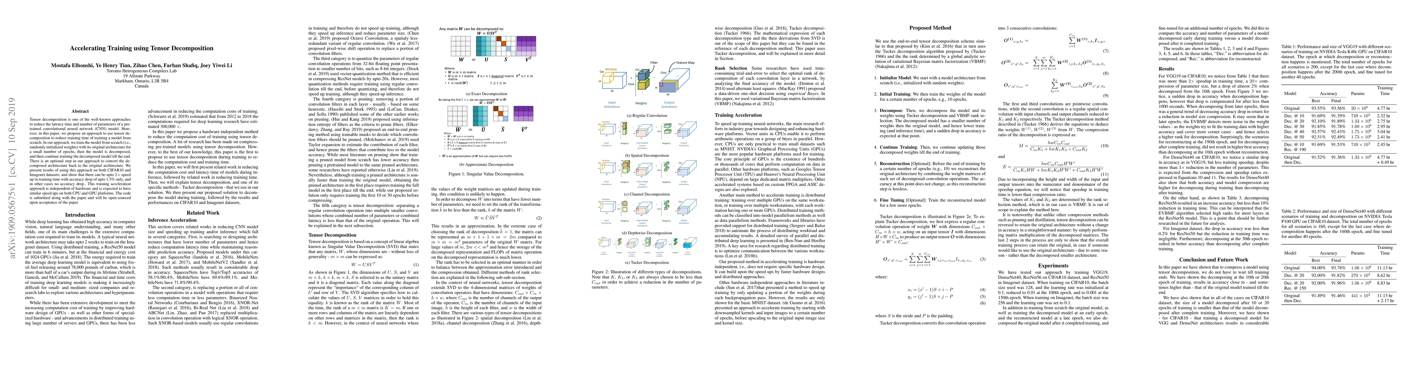 Researchers propose a training acceleration approach using tensor decomposition to reduce training time without sacrificing accuracy, achieving up to 2x speedup on CIFAR10 and Imagenet datasets.