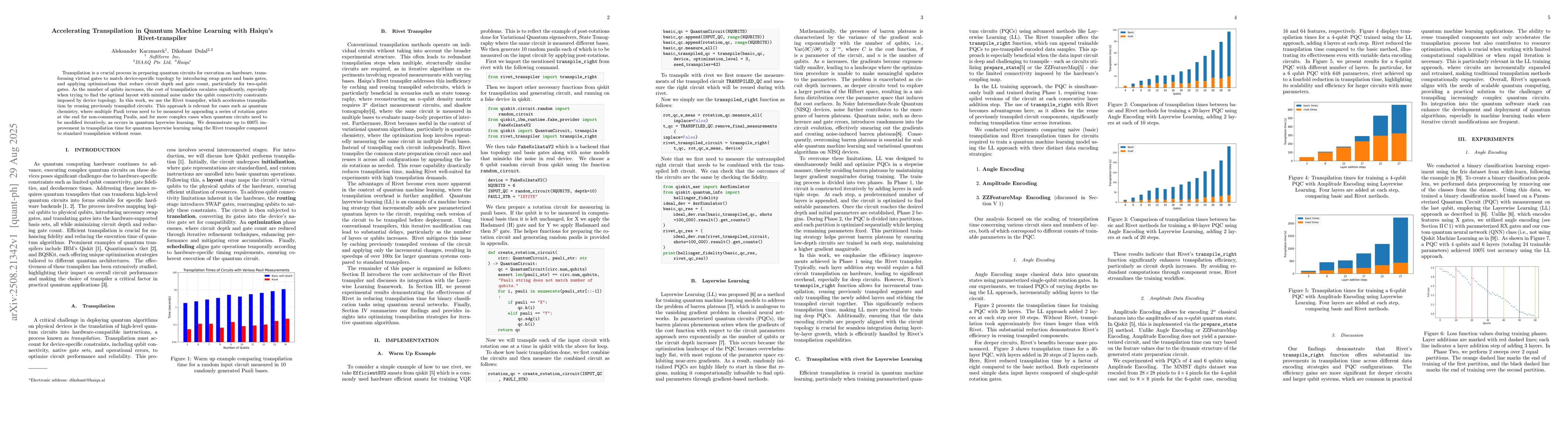 Transpilation is a crucial process in preparing quantum circuits for execution on hardware, transforming virtual gates to match device-specific topology by introducing swap gates and basis gates, and applying optimizations that reduce circuit depth and gate count, particularly for two-qubit gates. As the number of qubits increases, the cost of transpilation escalates significantly, especially when trying to find the optimal layout with minimal noise under the qubit connectivity constraints imposed by device topology. In this work, we use the Rivet transpiler, which accelerates transpilation by reusing previously transpiled circuits. This approach is relevant for cases such as quantum chemistry, where multiple Pauli terms need to be measured by appending a series of rotation gates at the end for non-commuting Paulis, and for more complex cases when quantum circuits need to be modified iteratively, as occurs in quantum layerwise learning. We demonstrate up to 600% improvement in transpilation time for quantum layerwise learning using the Rivet transpiler compared to standard transpilation without reuse.
