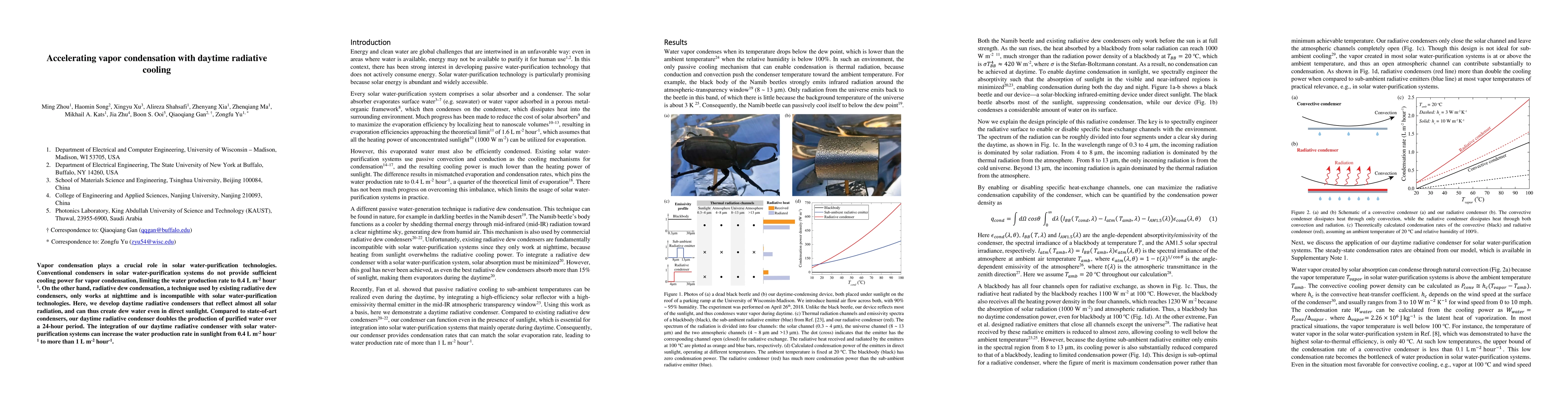 This paper presents a novel daytime radiative condenser that doubles water production in solar purification systems by reflecting solar radiation and enabling vapor condensation even in direct sunlight, thus increasing the water production rate from $0.4 L m^{-2} hour^{-1}$ to over $1 L m^{-2} hour^{-1}$.