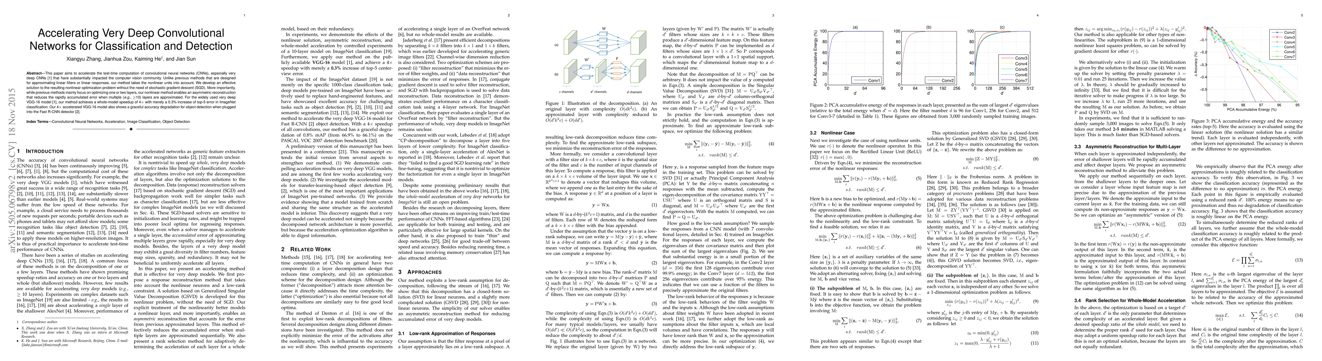 This paper aims to accelerate the test-time computation of convolutional neural networks (CNNs), especially very deep CNNs that have substantially impacted the computer vision community. Unlike previous methods that are designed for approximating linear filters or linear responses, our method takes the nonlinear units into account. We develop an effective solution to the resulting nonlinear optimization problem without the need of stochastic gradient descent (SGD). More importantly, while previous methods mainly focus on optimizing one or two layers, our nonlinear method enables an asymmetric reconstruction that reduces the rapidly accumulated error when multiple (e.g., >=10) layers are approximated. For the widely used very deep VGG-16 model, our method achieves a whole-model speedup of 4x with merely a 0.3% increase of top-5 error in ImageNet classification. Our 4x accelerated VGG-16 model also shows a graceful accuracy degradation for object detection when plugged into the Fast R-CNN detector.
