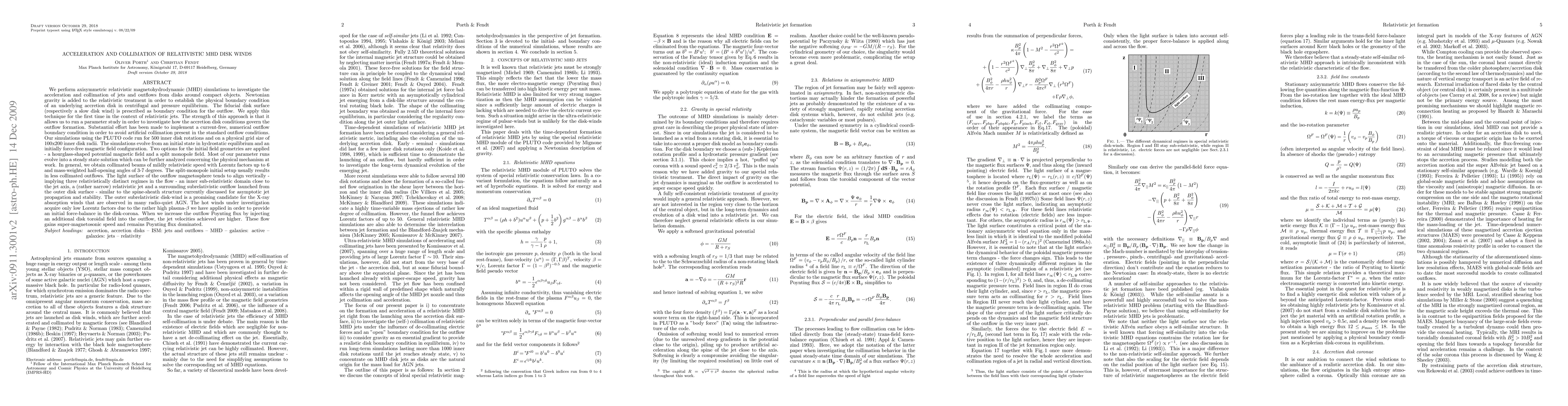 This paper uses relativistic magnetohydrodynamic simulations to study the acceleration and collimation of jets from accretion disks around compact objects. The simulations reveal collimated, mildly relativistic jets with half-opening angles of 3-7 degrees, and show that increasing the outflow Poynting flux can boost Lorentz factors up to 6, creating a spine-sheath structure similar to observed X-ray absorption winds in AGN.
