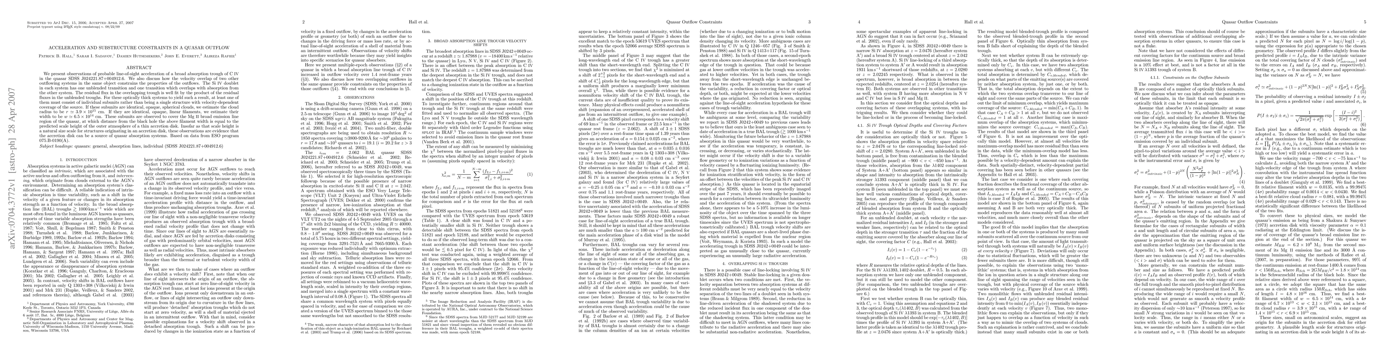 Researchers observed probable line-of-sight acceleration of a quasar outflow, finding evidence that accretion disks can create the source of absorption systems, with estimated cloud radii ranging from 3.9 to 6.5 billion cm.