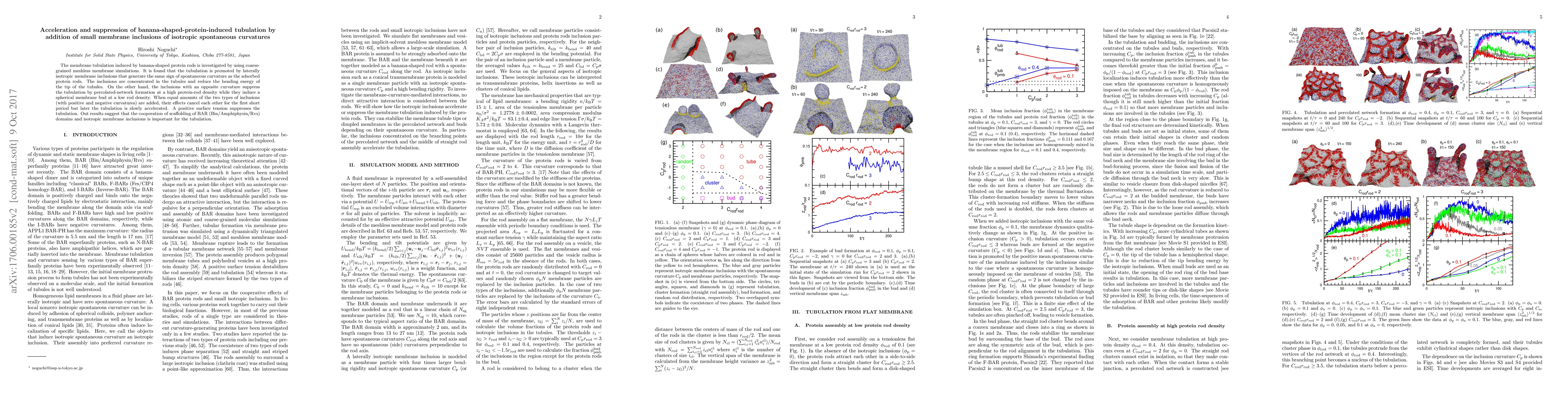 This paper investigates how small isotropic membrane inclusions influence the tubulation induced by banana-shaped protein rods using simulations. The study finds that inclusions with matching spontaneous curvatures promote tubulation, while those with opposite curvatures suppress it, depending on the protein-rod density.