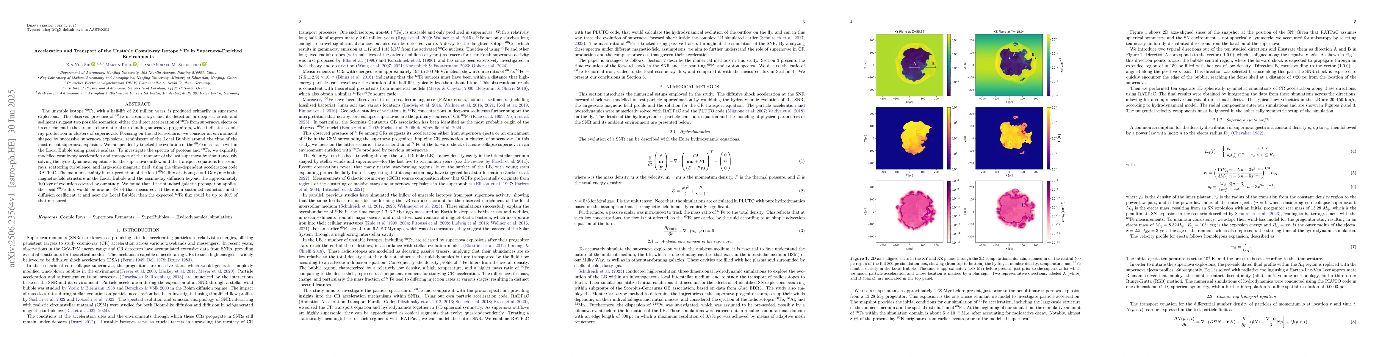 The unstable isotope $^{60}$Fe, with a half-life of 2.6 million years, is produced primarily in supernova explosions. The observed presence of $^{60}$Fe in cosmic rays and its detection in deep-sea crusts and sediments suggest two possible scenarios: either the direct acceleration of $^{60}$Fe from supernova ejecta or its enrichment in the circumstellar material surrounding supernova progenitors, which indicates cosmic ray production in clusters of supernovae. Focusing on the latter scenario, we consider an environment shaped by successive supernova explosions, reminiscent of the Local Bubble around the time of the most recent supernova explosion. We independently tracked the evolution of the $^{60}$Fe mass ratio within the Local Bubble using passive scalars. To investigate the spectra of protons and $^{60}$Fe, we explicitly modelled cosmic-ray acceleration and transport at the remnant of the last supernova by simultaneously solving the hydrodynamical equations for the supernova outflow and the transport equations for cosmic rays, scattering turbulence, and large-scale magnetic field, using the time-dependent acceleration code RATPaC. The main uncertainty in our prediction of the local $^{60}$Fe flux at about $pc=1$ GeV/nuc is the magnetic-field structure in the Local Bubble and the cosmic-ray diffusion beyond the approximately $100$ kyr of evolution covered by our study. We found that if the standard galactic propagation applies, the local $^{60}$Fe flux would be around 3% of that measured. If there is a sustained reduction in the diffusion coefficient at and near the Local Bubble, then the expected $^{60}$Fe flux could be up to 30% of that measured.