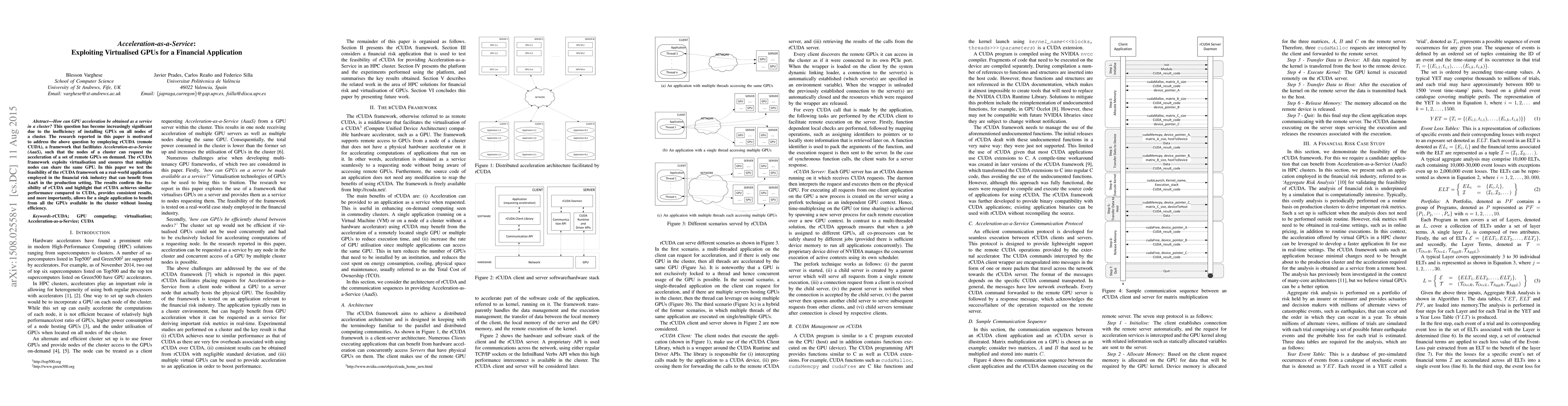 A research paper explores the feasibility of Acceleration-as-a-Service using rCUDA framework on a financial risk industry application, showing similar performance to CUDA with consistent results and efficiency gains.