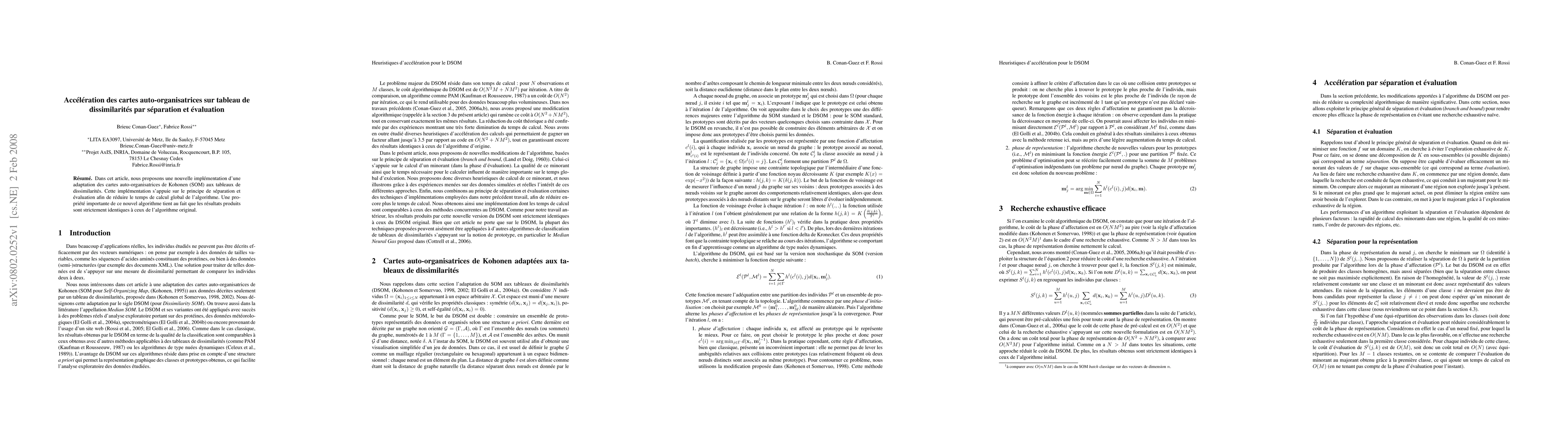 In this paper, a new implementation of the adaptation of Kohonen self-organising maps (SOM) to dissimilarity matrices is proposed. This implementation relies on the branch and bound principle to reduce the algorithm running time. An important property of this new approach is that the obtained algorithm produces exactly the same results as the standard algorithm.