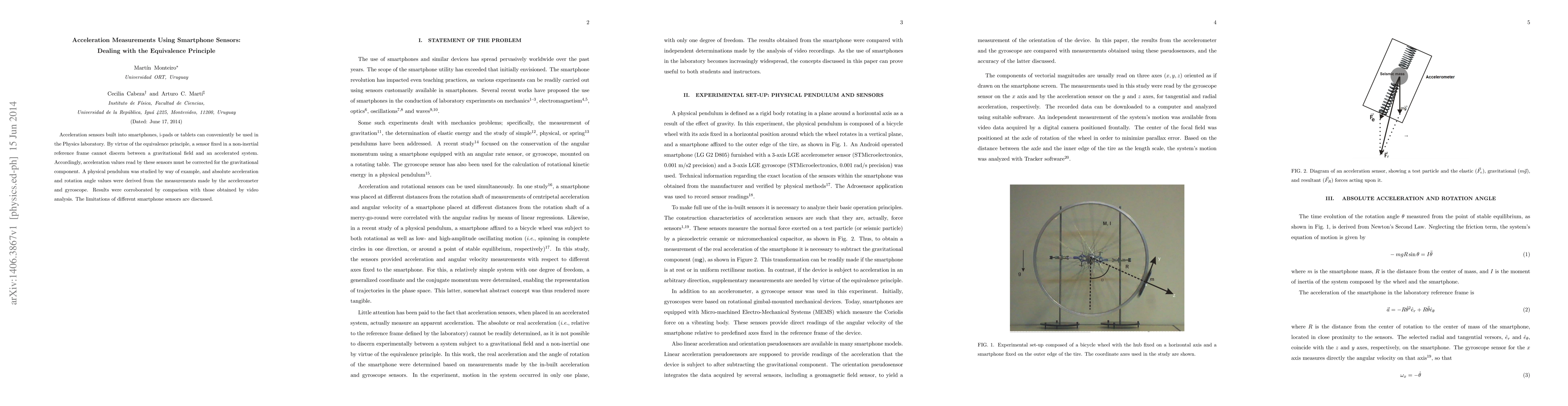 This paper explores the use of smartphone sensors for measuring acceleration in physics labs, highlighting the need to correct for gravitational components due to the equivalence principle. Results from a physical pendulum experiment, validated by video analysis, demonstrate the potential and limitations of smartphone sensors in such applications.