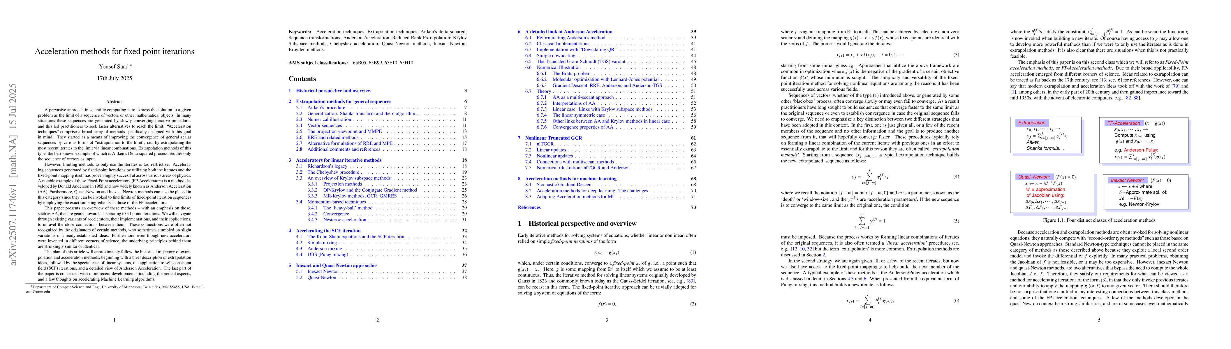 A pervasive approach in scientific computing is to express the solution to a given problem as the limit of a sequence of vectors or other mathematical objects. In many situations these sequences are generated by slowly converging iterative procedures and this led practitioners to seek faster alternatives to reach the limit. ``Acceleration techniques'' comprise a broad array of methods specifically designed with this goal in mind. They started as a means of improving the convergence of general scalar sequences by various forms of ``extrapolation to the limit'', i.e., by extrapolating the most recent iterates to the limit via linear combinations. Extrapolation methods of this type, the best known example of which is Aitken's Delta-squared process, require only the sequence of vectors as input. However, limiting methods to only use the iterates is too restrictive. Accelerating sequences generated by fixed-point iterations by utilizing both the iterates and the fixed-point mapping itself has proven highly successful across various areas of physics. A notable example of these Fixed-Point accelerators (FP-Accelerators) is a method developed by D. Anderson in 1965 and now widely known as Anderson Acceleration (AA). Furthermore, Quasi-Newton and Inexact Newton methods can also be placed in this category as well. This paper presents an overview of these methods -- with an emphasis on those, such as AA, that are geared toward accelerating fixed point iterations.