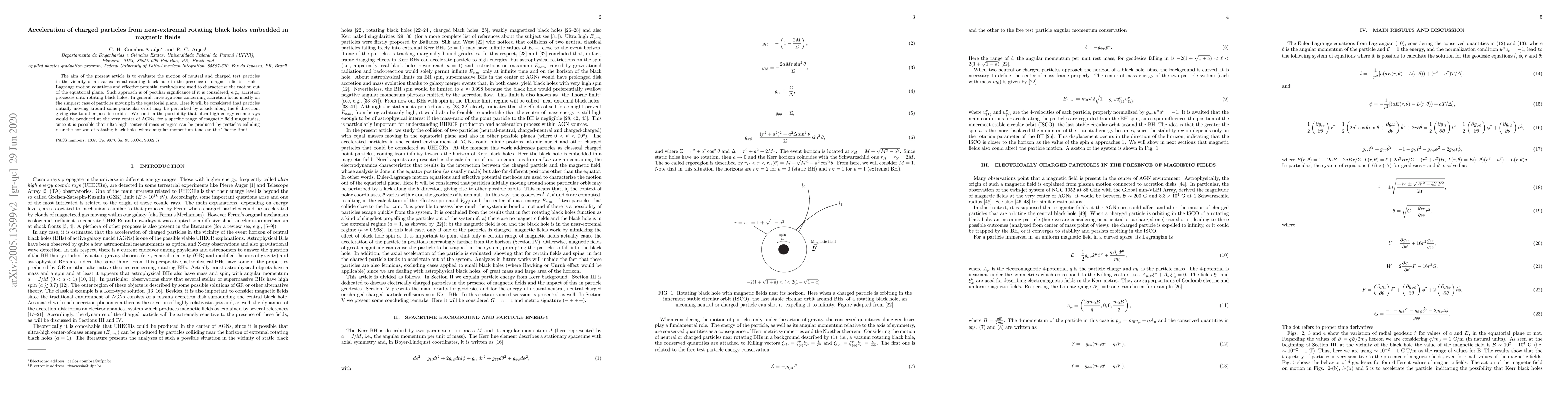 This paper explores the motion of charged particles near a near-extremal rotating black hole in magnetic fields, using Euler-Lagrange equations and effective potential methods. It finds that ultra-high energy cosmic rays could be generated at the center of AGNs due to particle collisions near the black hole's horizon.