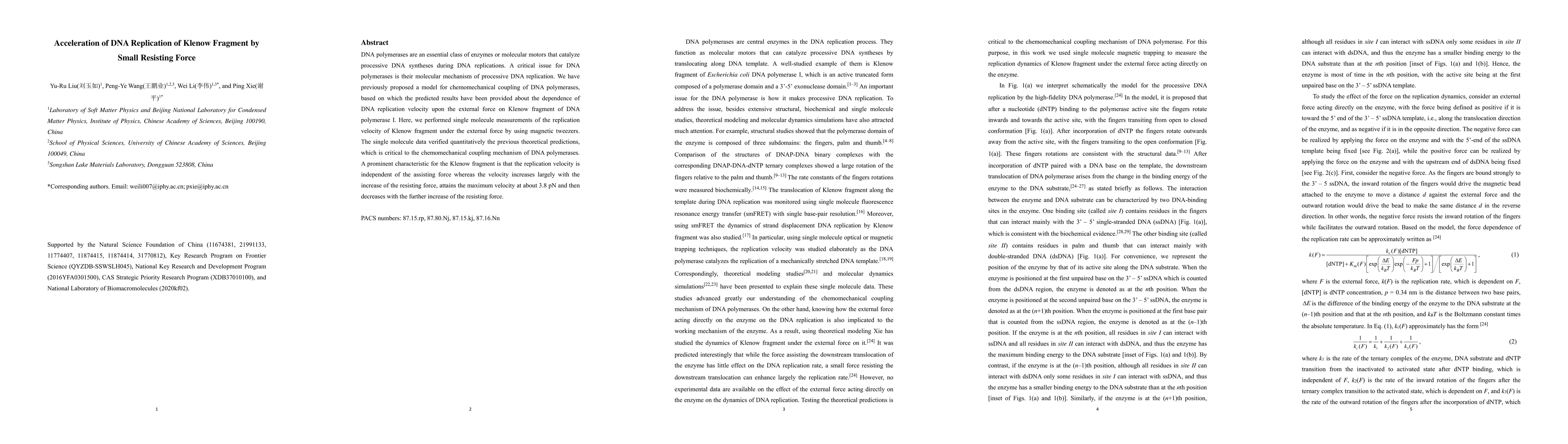 This study demonstrates the importance of resisting force in enhancing DNA replication velocity, a novel finding with potential biological implications