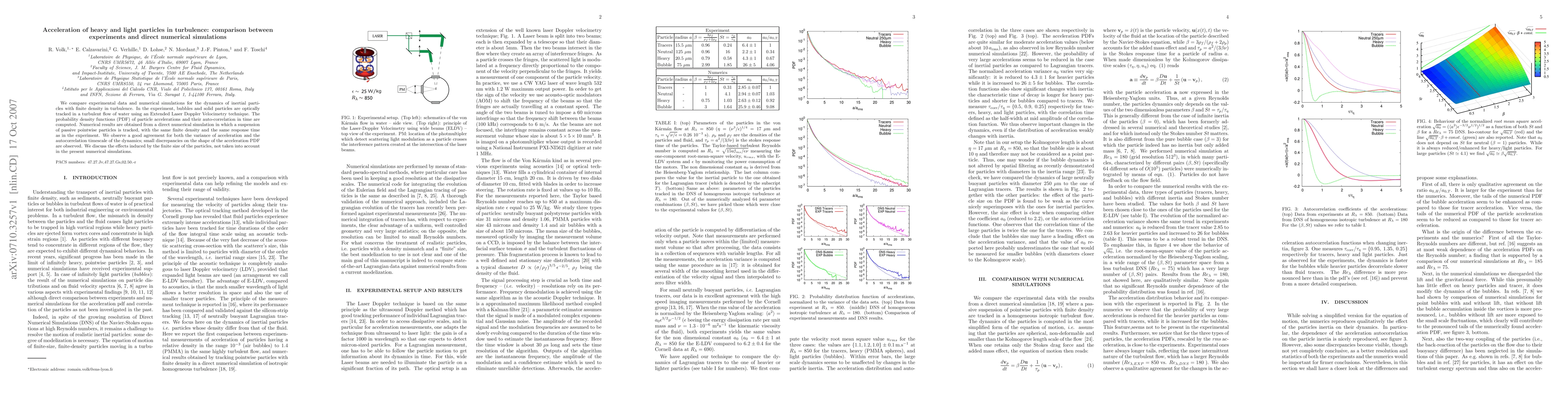 This study compares experimental data and direct numerical simulations on the dynamics of inertial particles in turbulent water flows, finding good agreement in acceleration variance and autocorrelation timescales, though minor discrepancies in acceleration PDF shapes are noted, likely due to the finite size of particles not fully modeled in simulations.