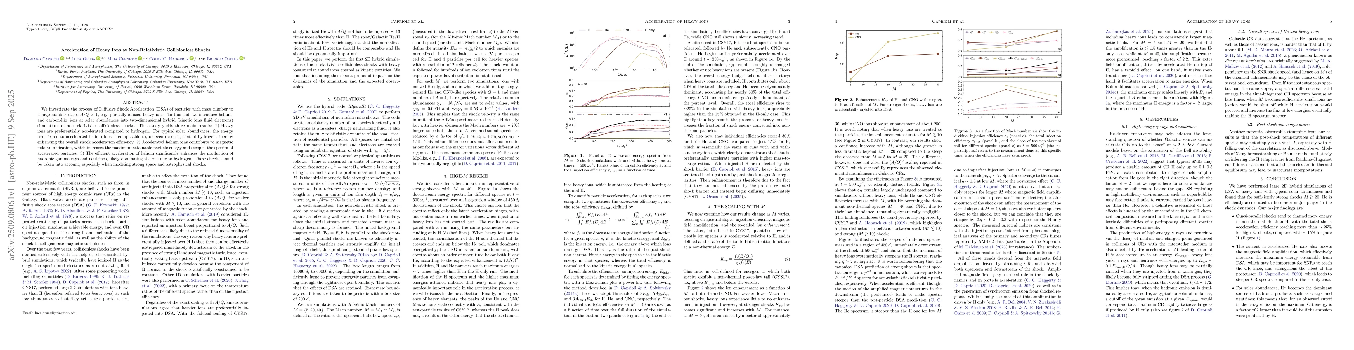 We investigate the process of Diffusive Shock Acceleration (DSA) of particles with mass number to charge number ratios $A/Q > 1$, e.g., partially-ionized heavy ions. To this end, we introduce helium- and carbon-like ions at solar abundances into two-dimensional hybrid (kinetic ions--fluid electrons) simulations of non-relativistic collisionless shocks. This study yields three main results: 1) Heavy ions are preferentially accelerated compared to hydrogen. For typical solar abundances, the energy transferred to accelerated helium ions is comparable to, or even exceeds, that of hydrogen, thereby enhancing the overall shock acceleration efficiency. 2) Accelerated helium ions contribute to magnetic field amplification, which increases the maximum attainable particle energy and steepen the spectra of accelerated particles. 3) The efficient acceleration of helium significantly enhances the production of hadronic gamma rays and neutrinos, likely dominating the one due to hydrogen. These effects should be taken into account, especially when modeling strong space and astrophysical shocks.