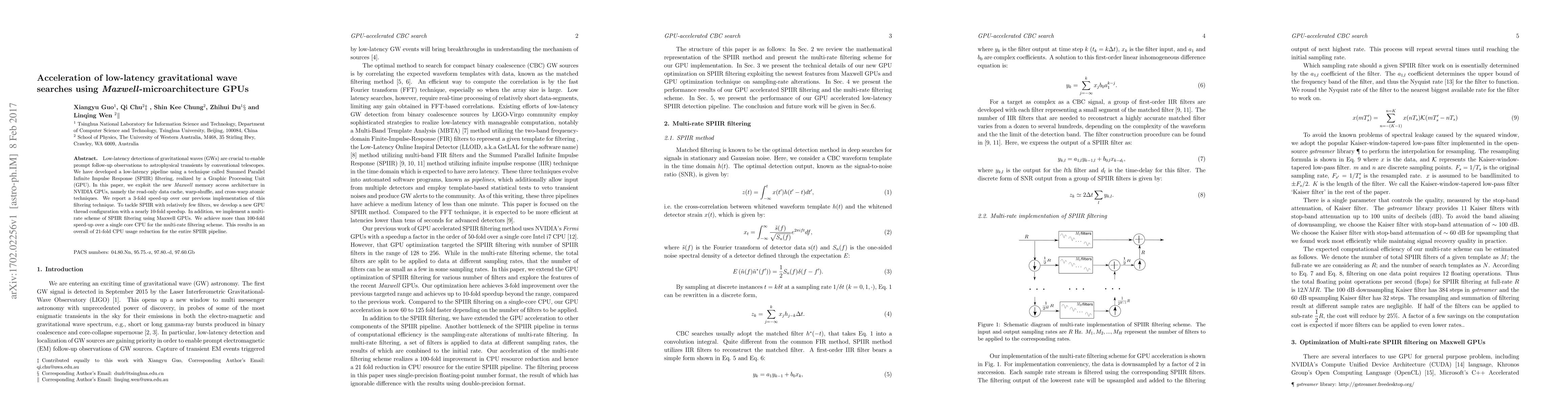 Low-latency detections of gravitational waves (GWs) are crucial to enable prompt follow-up observations to astrophysical transients by conventional telescopes. We have developed a low-latency pipeline using a technique called Summed Parallel Infinite Impulse Response (SPIIR) filtering, realized by a Graphic Processing Unit (GPU). In this paper, we exploit the new \textit{Maxwell} memory access architecture in NVIDIA GPUs, namely the read-only data cache, warp-shuffle, and cross-warp atomic techniques. We report a 3-fold speed-up over our previous implementation of this filtering technique. To tackle SPIIR with relatively few filters, we develop a new GPU thread configuration with a nearly 10-fold speedup. In addition, we implement a multi-rate scheme of SPIIR filtering using Maxwell GPUs. We achieve more than 100-fold speed-up over a single core CPU for the multi-rate filtering scheme. This results in an overall of 21-fold CPU usage reduction for the entire SPIIR pipeline.