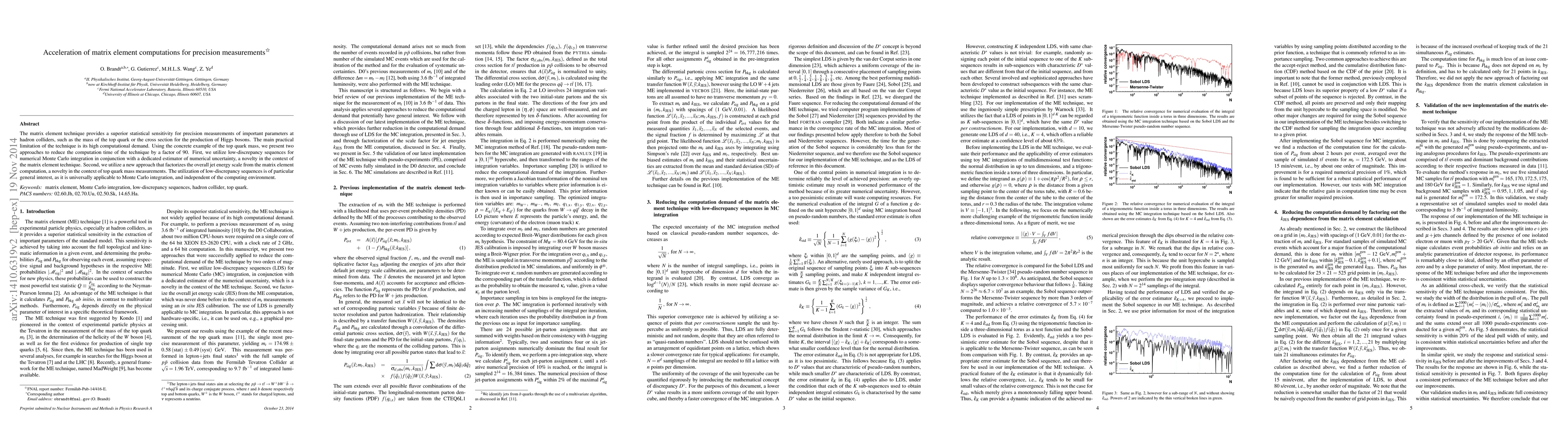This paper presents two innovative methods to drastically reduce the computational time for matrix element computations in precision measurements at hadron colliders, achieving a 90-fold speedup. The approaches include using low-discrepancy sequences for Monte Carlo integration and a novel factorization technique for jet energy scale, both applicable broadly in high-energy physics.