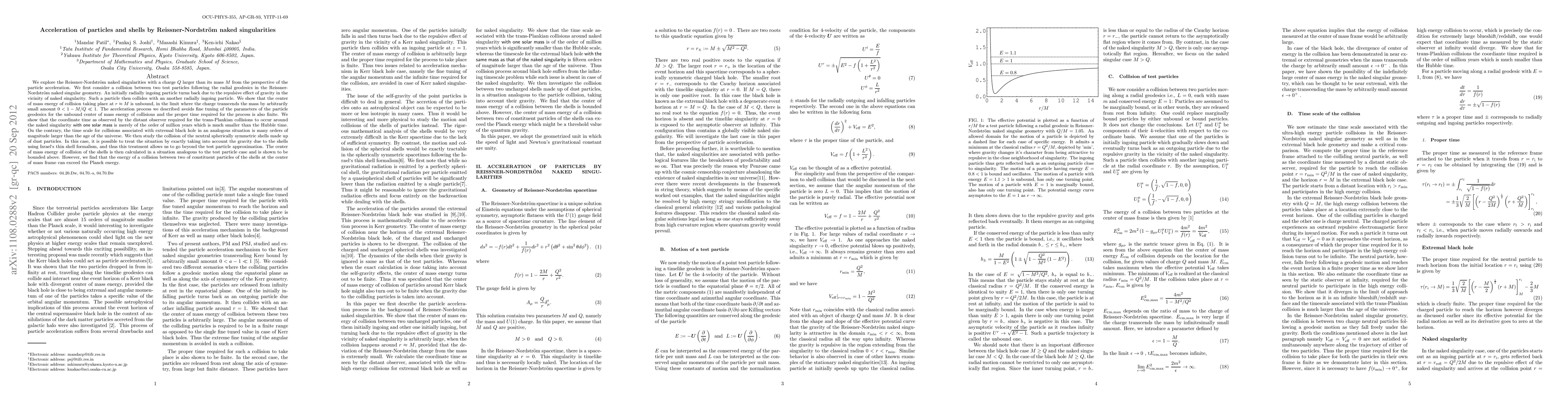 This paper investigates the acceleration of particles and shells by Reissner-Nordström naked singularities where the charge exceeds the mass. It shows that collisions near such singularities can achieve unbound center of mass energies, even when the charge slightly exceeds the mass, without requiring fine-tuned parameters. The study also examines the collision of neutral dust shells, revealing that while the shell collision energy is bounded, individual particle collisions within the shells can surpass Planck energy.