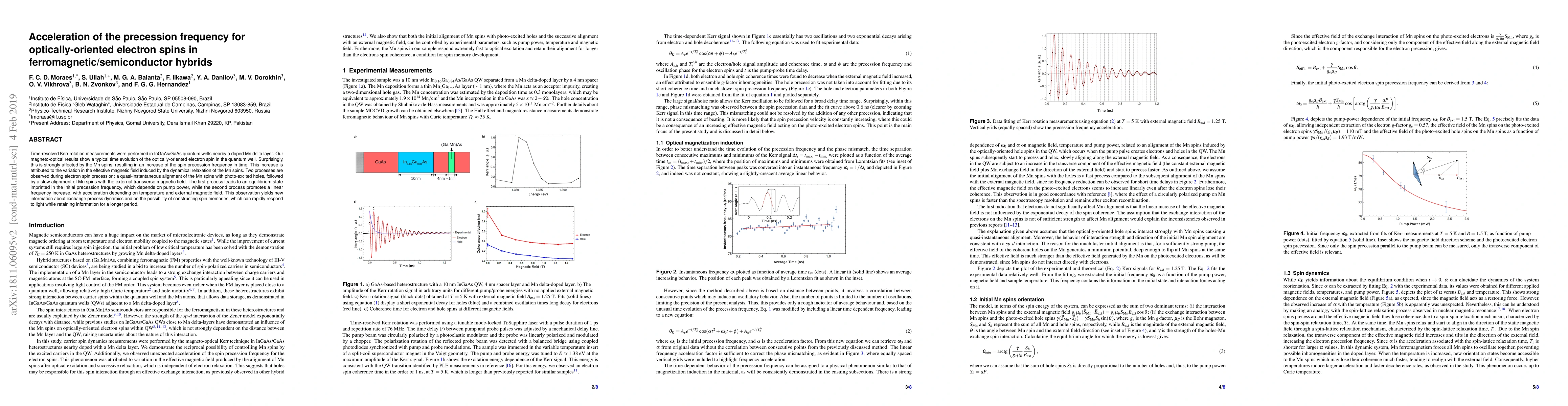 This study reveals an accelerated precession frequency of optically-oriented electron spins in InGaAs/GaAs quantum wells due to interactions with Mn spins in nearby layers, driven by changes in the effective magnetic field. The findings suggest potential for developing spin memories with rapid light response and extended information retention.