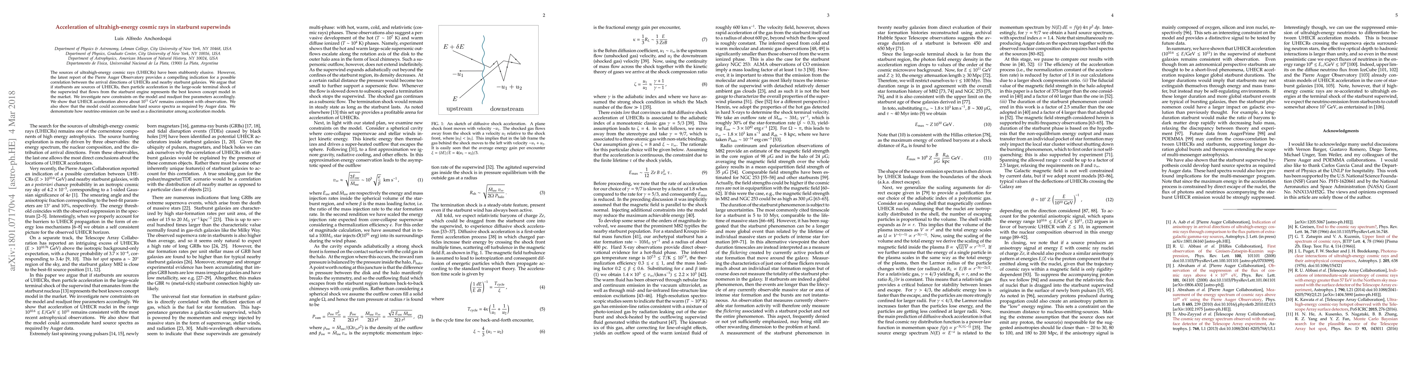 The sources of ultrahigh-energy cosmic rays (UHECRs) have been stubbornly elusive. However, the latest report of the Pierre Auger Observatory provides a compelling indication for a possible correlation between the arrival directions of UHECRs and nearby starburst galaxies. We argue that if starbursts are sources of UHECRs, then particle acceleration in the large-scale terminal shock of the superwind that flows from the starburst engine represents the best known concept model in the market. We investigate new constraints on the model and readjust free parameters accordingly. We show that UHECR acceleration above about 10^{11} GeV remains consistent with observation. We also show that the model could accommodate hard source spectra as required by Auger data. We demonstrate how neutrino emission can be used as a discriminator among acceleration models.
