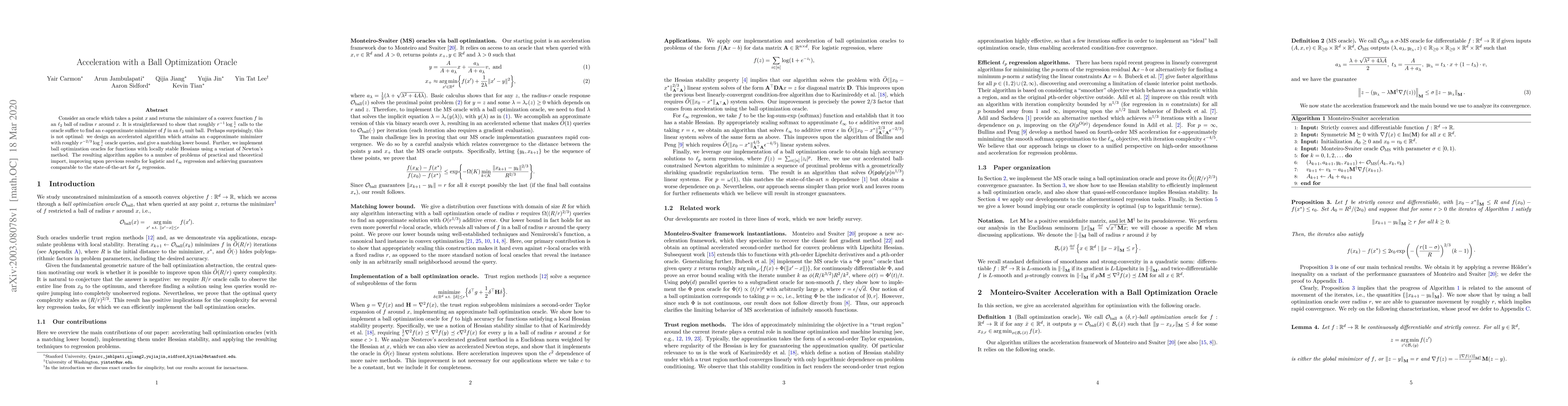 Researchers created a more efficient algorithm to find the minimum of a convex function within an ellipse using a ball optimization oracle, reducing the number of queries required from $r^{-1} extlograc{1}{ extepsilon}$ to $r^{-2/3} extlograc{1}{ extepsilon}$. The new method improves upon previous results for regression problems and achieves comparable guarantees.