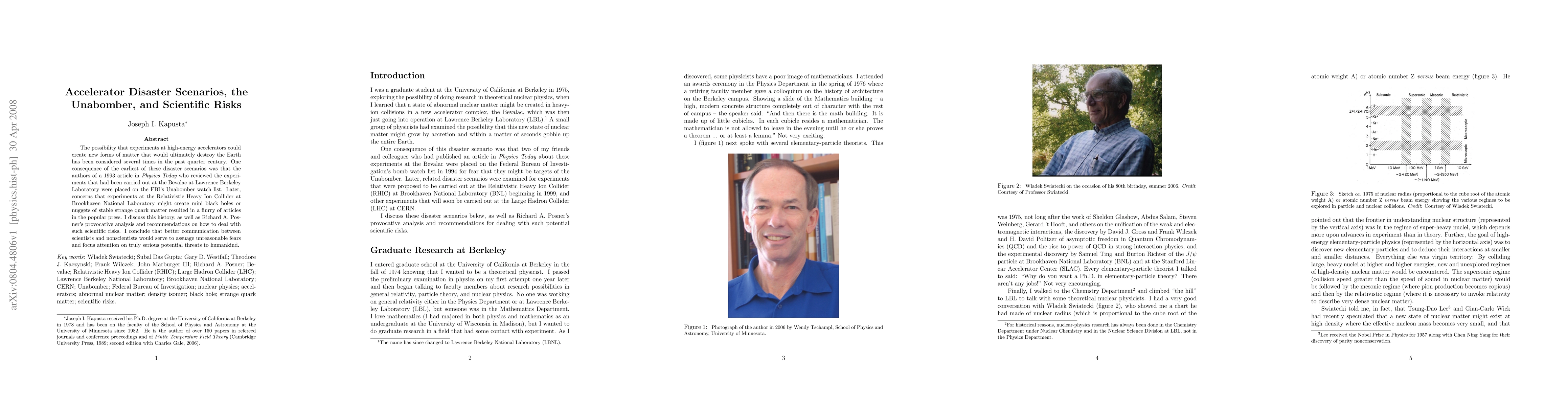 The possibility that experiments at high-energy accelerators could create new forms of matter that would ultimately destroy the Earth has been considered several times in the past quarter century. One consequence of the earliest of these disaster scenarios was that the authors of a 1993 article in "Physics Today" who reviewed the experiments that had been carried out at the Bevalac at Lawrence Berkeley Laboratory were placed on the FBI's Unabomber watch list. Later, concerns that experiments at the Relativistic Heavy Ion Collider at Brookhaven National Laboratory might create mini black holes or nuggets of stable strange quark matter resulted in a flurry of articles in the popular press. I discuss this history, as well as Richard A. Posner's provocative analysis and recommendations on how to deal with such scientific risks. I conclude that better communication between scientists and nonscientists would serve to assuage unreasonable fears and focus attention on truly serious potential threats to humankind.