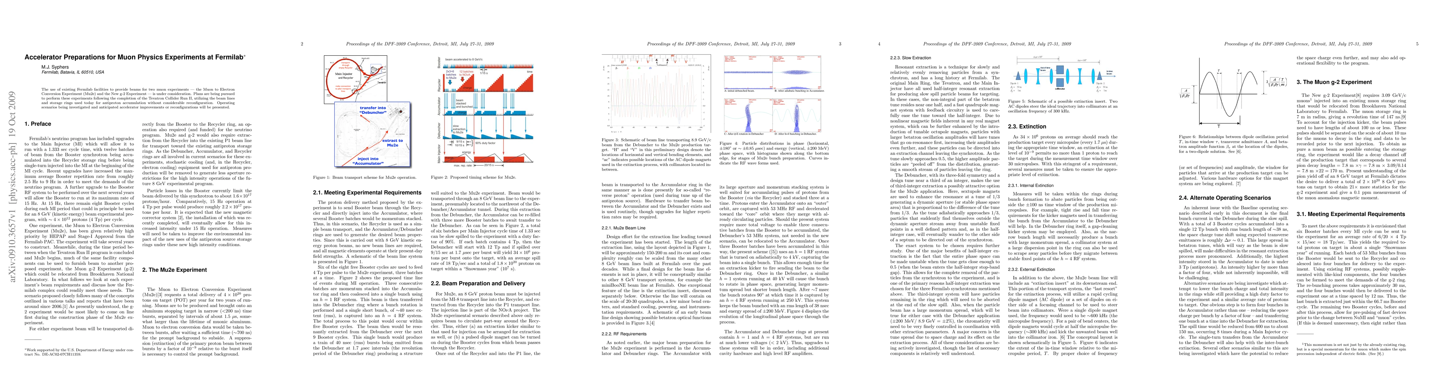 The use of existing Fermilab facilities to provide beams for two muon experiments -- the Muon to Electron Conversion Experiment (Mu2e) and the New g-2 Experiment -- is under consideration. Plans are being pursued to perform these experiments following the completion of the Tevatron Collider Run II, utilizing the beam lines and storage rings used today for antiproton accumulation without considerable reconfiguration. Operating scenarios being investigated and anticipated accelerator improvements or reconfigurations will be presented.