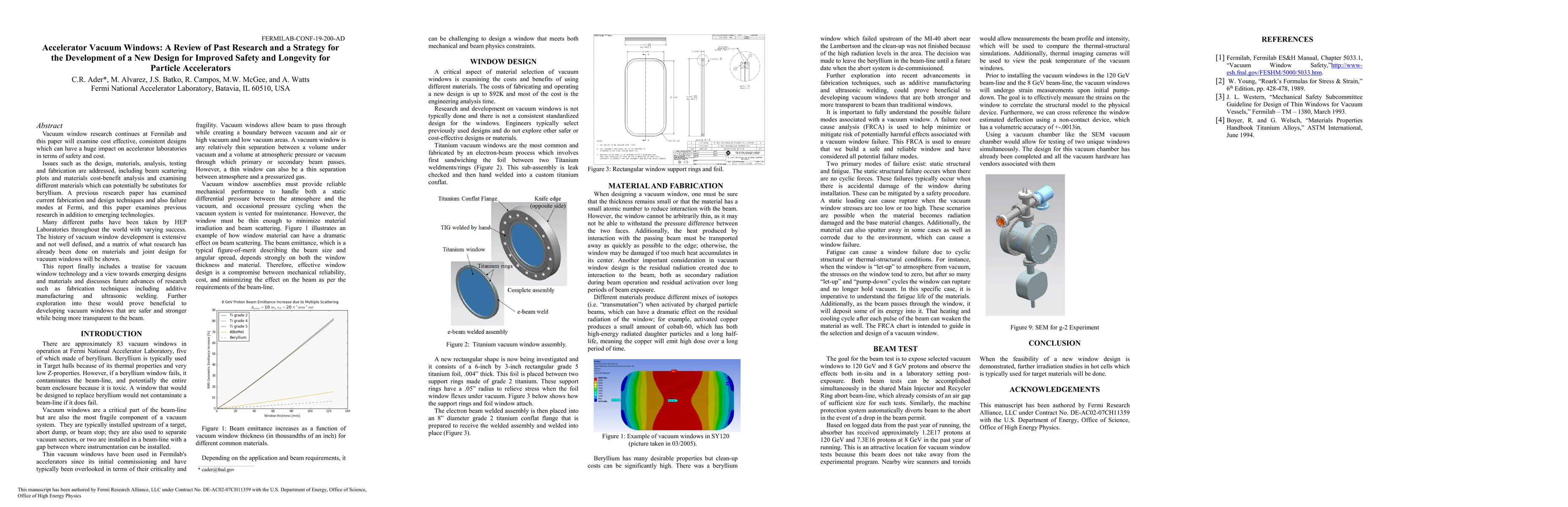Vacuum window research continues at Fermilab and this paper will examine cost effective, consistent designs which can have a huge impact on accelerator laboratories in terms of safety and cost. Issues such as the design, materials, analysis, testing and fabrication are addressed, including beam scattering plots and materials cost-benefit analysis and examining different materials which can potentially be substitutes for beryllium. A previous research paper has examined current fabrication and design techniques and also failure modes at Fermi, and this paper examines previous research in addition to emerging technologies. Many different paths have been taken by HEP Laboratories throughout the world with varying success. The history of vacuum window development is extensive and not well defined, and a matrix of what research has already been done on materials and joint design for vacuum windows will be shown. This report finally includes a treatise for vacuum window technology and a view towards emerging designs and materials and discusses future advances of research such as fabrication techniques including additive manufacturing and ultrasonic welding. Further exploration into these would prove beneficial to developing vacuum windows that are safer and stronger while being more transparent to the beam.