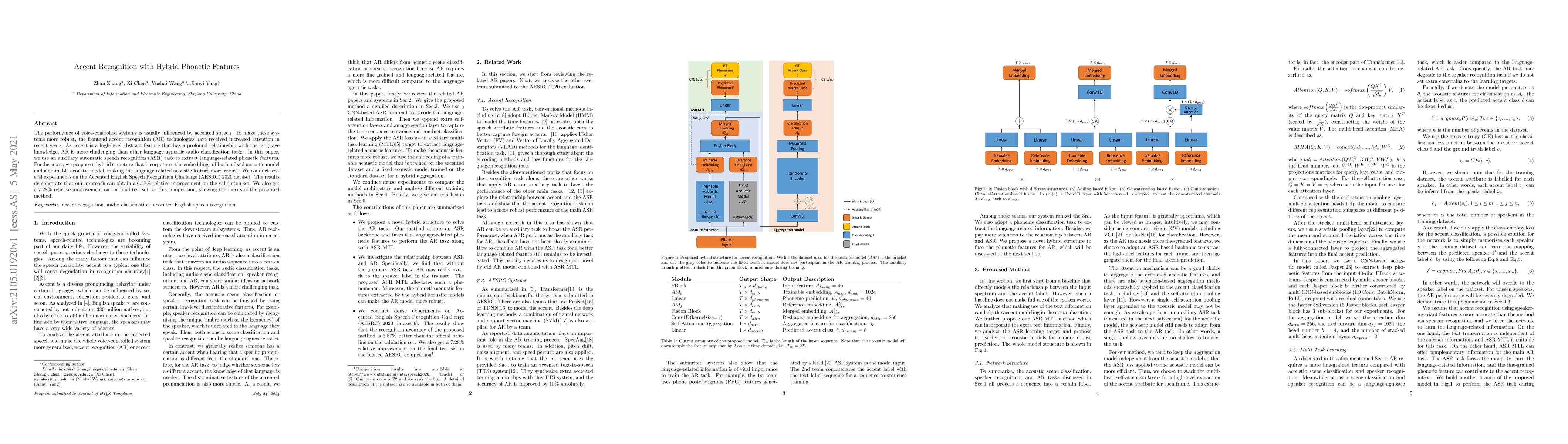 This paper proposes a hybrid accent recognition method using phonetic features extracted from an auxiliary ASR task, achieving 6.57% relative improvement on the validation set and 7.28% on the test set.