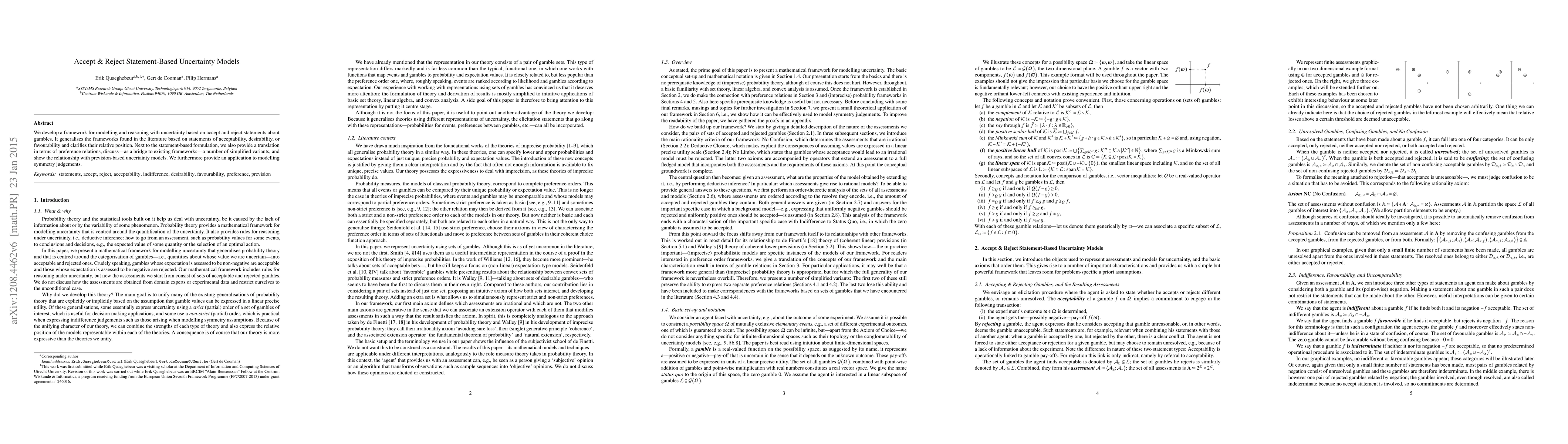 This paper introduces a framework for uncertainty modelling using accept and reject statements about gambles, generalizing existing frameworks based on acceptability, desirability, or favourability. It also translates these into preference relations and connects them to prevision-based models, with an application to symmetry judgements.