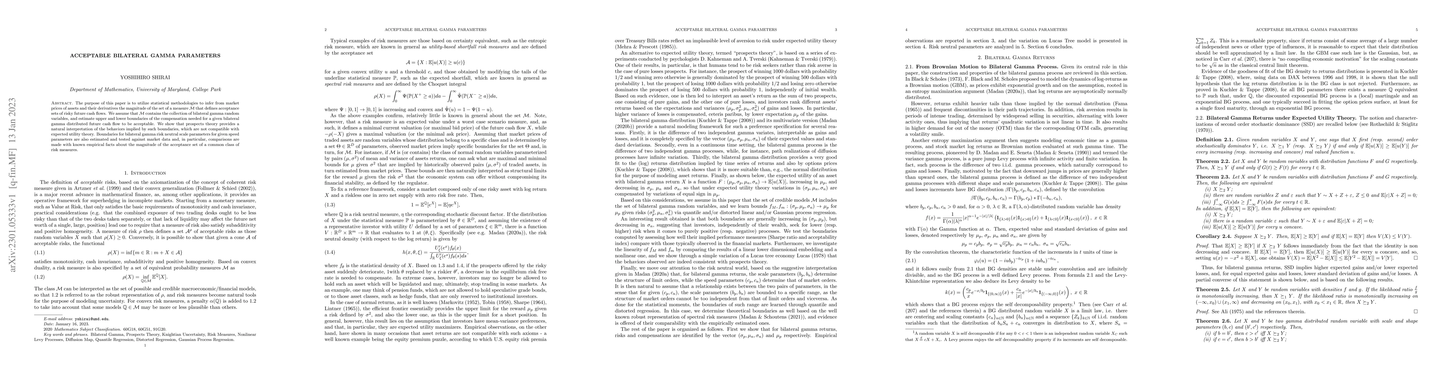 The purpose of this paper is to utilize statistical methodologies to infer from market prices of assets and their derivatives the magnitude of the set of a measure M that defines acceptance sets of risky future cash flows. Specifically, we estimate upper and lower boundaries of the compensation needed for a given bilateral gamma distributed future cash flow to be acceptable. We show that prospects theory provides a natural interpretation of the behaviors implied by such boundaries, which are not compatible with expected utility theory over terminal wealth. Boundaries for bilateral gamma risk neutral scale parameters for given speed parameters are also estimated and tested against market data and, in particular, comparisons are made with known empirical facts about the magnitude of the acceptance set of a common class of risk measures.