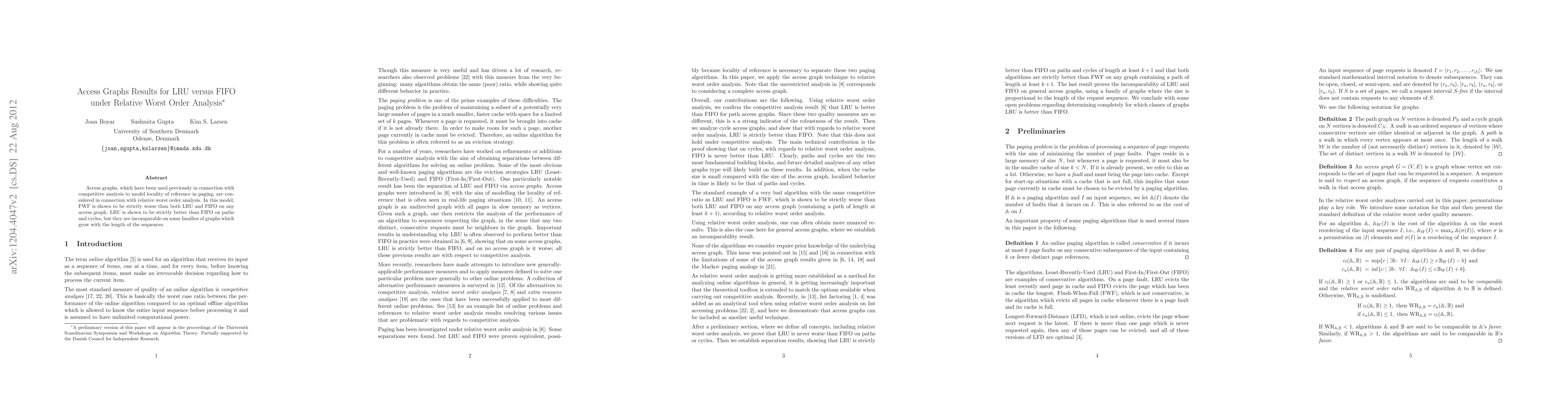 Access graphs, which have been used previously in connection with competitive analysis to model locality of reference in paging, are considered in connection with relative worst order analysis. In this model, FWF is shown to be strictly worse than both LRU and FIFO on any access graph. LRU is shown to be strictly better than FIFO on paths and cycles, but they are incomparable on some families of graphs which grow with the length of the sequences.
