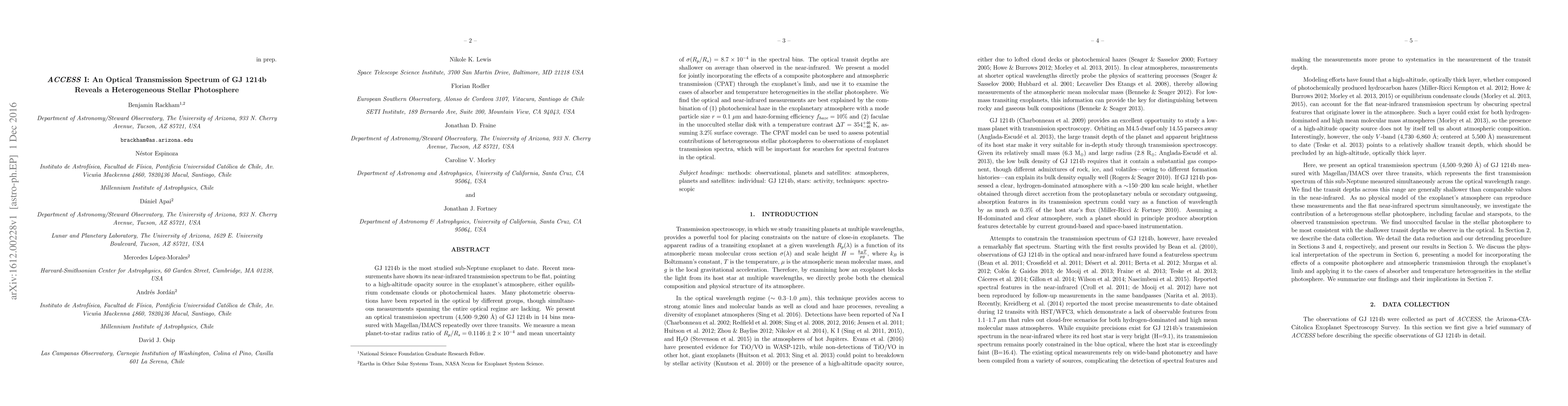 This paper presents an optical transmission spectrum of GJ 1214b, revealing shallower optical transit depths compared to near-infrared observations. The study combines a composite photosphere and atmospheric transmission model to attribute these differences to photochemical haze in the exoplanet's atmosphere and faculae in the star's photosphere.