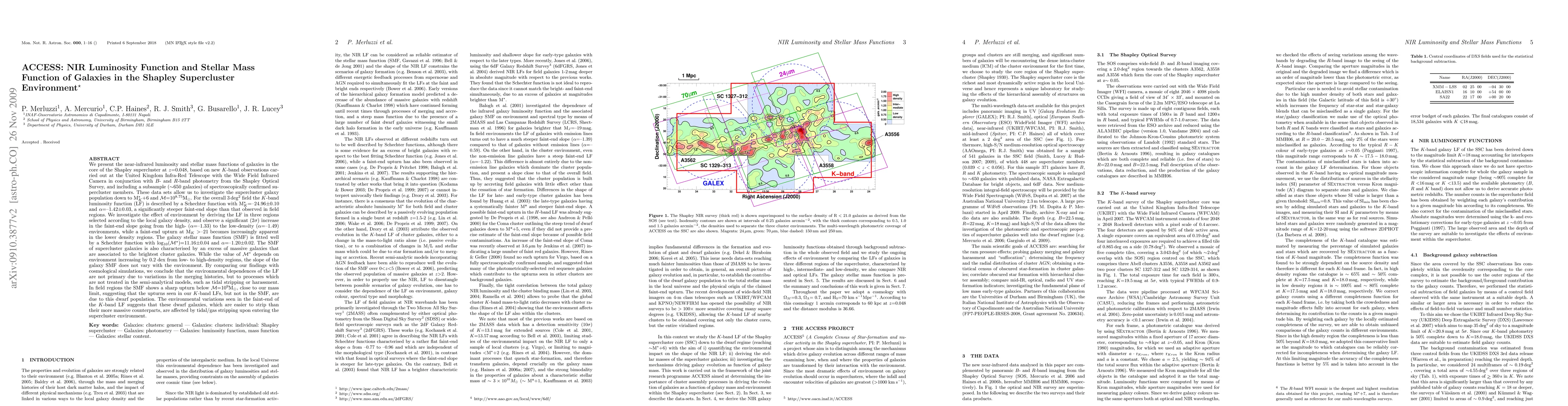 This paper investigates the NIR luminosity function (LF) and stellar mass function (SMF) of galaxies in the Shapley supercluster, finding significant environmental effects on the faint-end slope of the LF. The study reveals that the LF slope increases with lower local galaxy density, suggesting processes like tidal stripping impact dwarf galaxies more than massive ones.